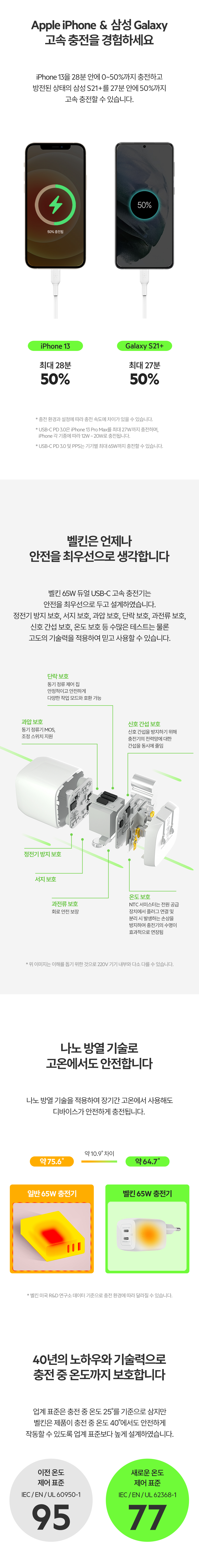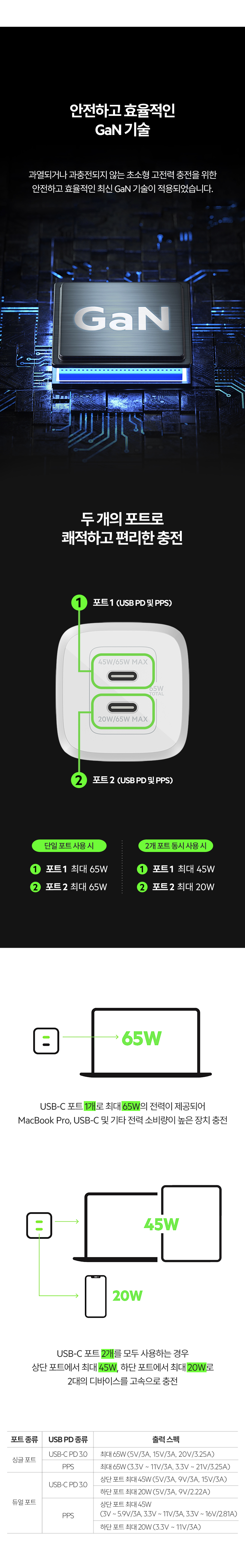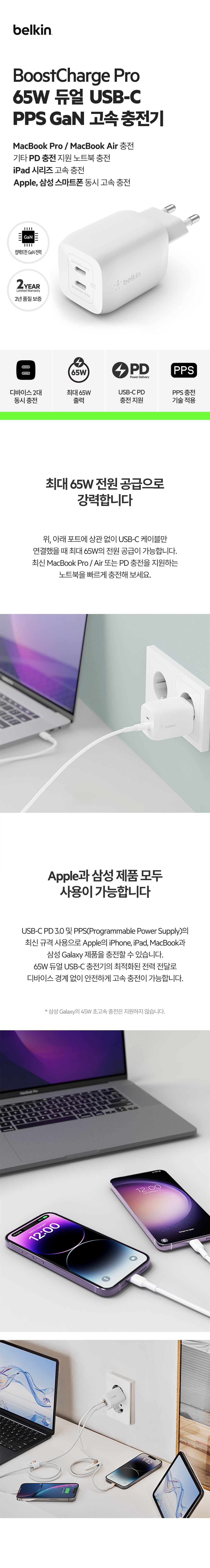 벨킨 65W 듀얼 USB-C타입 PD 3.0 PPS Gan 고속 충전기 WCH013kr
