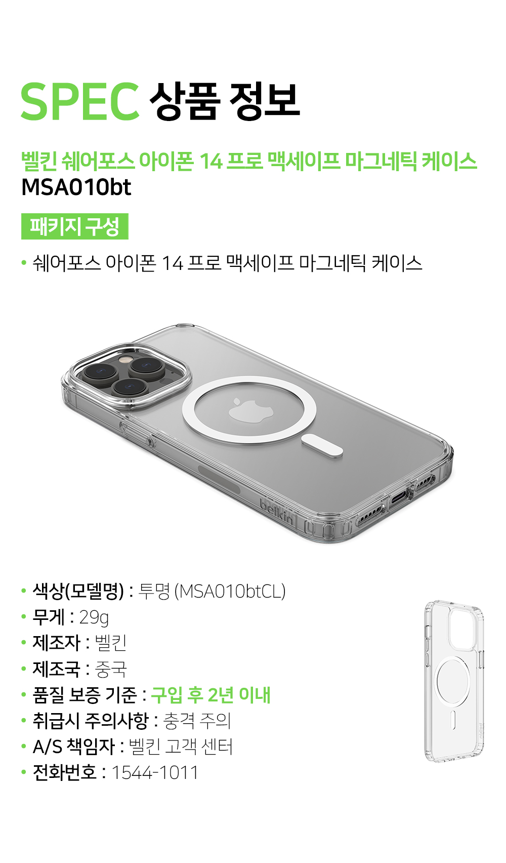 벨킨 아이폰14 프로 맥세이프 마그네틱 케이스 MSA010bt