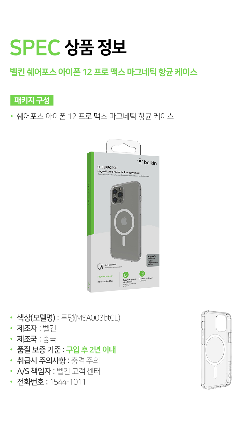 벨킨 아이폰12 프로 맥스 맥세이프 마그네틱 케이스 MSA003bt