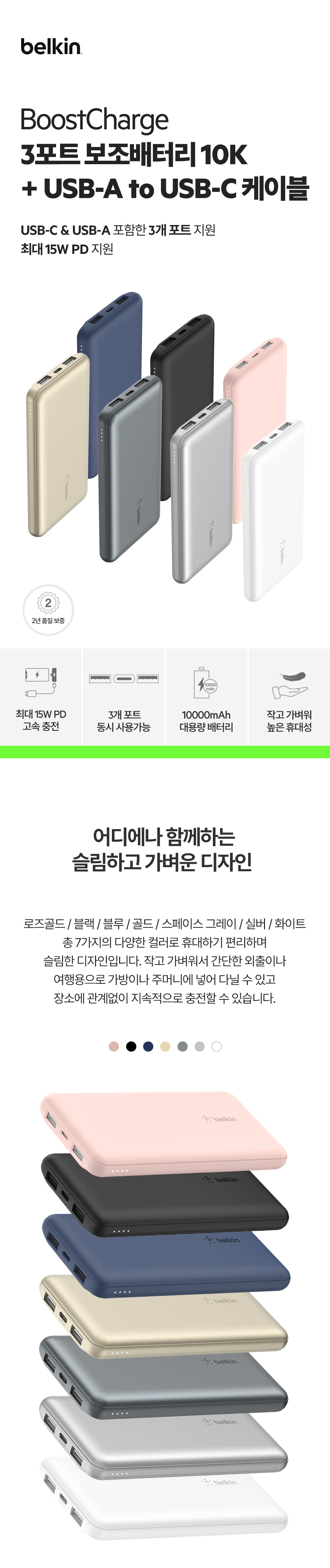 벨킨 10000mAh 3포트 15W PD 고속 충전 보조배터리 BPB011bt