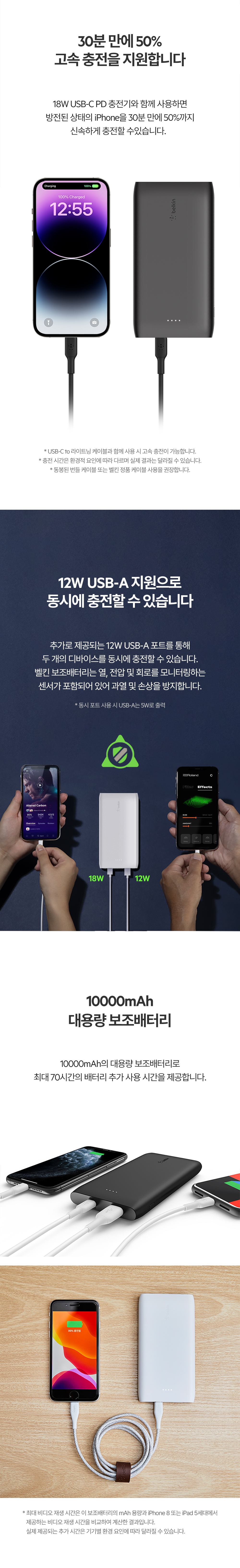 벨킨 USB-C PD 고속 충전 보조배터리 10000mAh BPB001bt 블랙