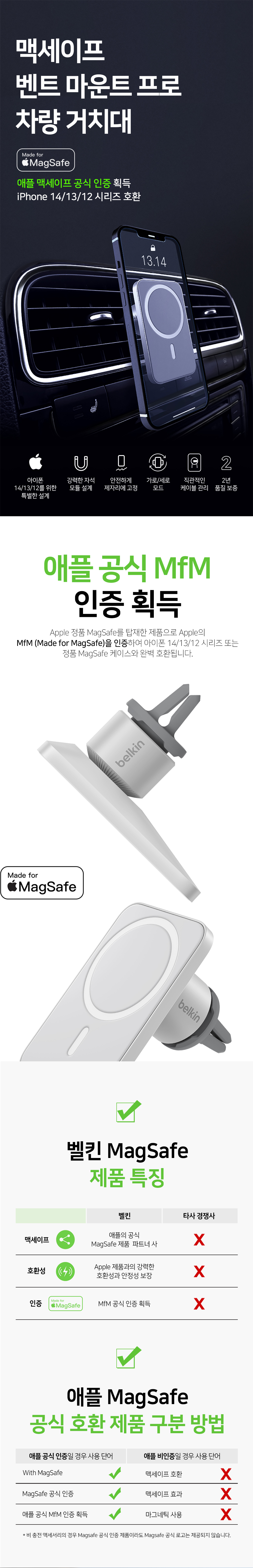 벨킨 맥세이프 벤트마운트 프로 차량용 송풍구 거치대 WIC002bt