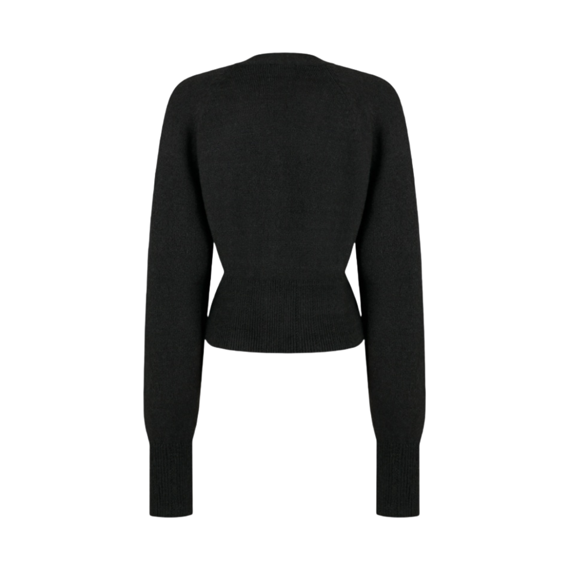 (W) Aviemuah Eyelet Ribbed V-Neck Cardigan Dark Grey