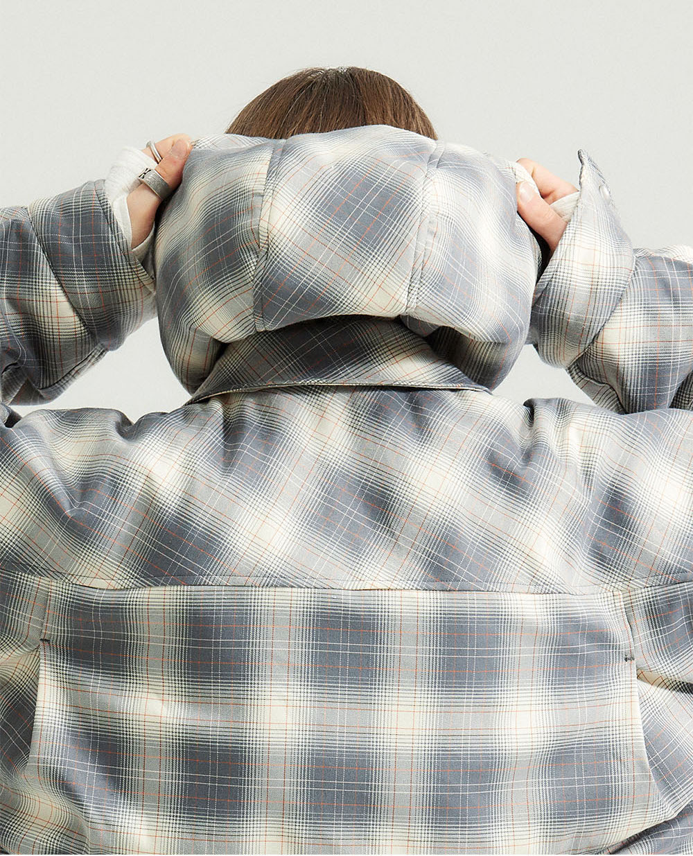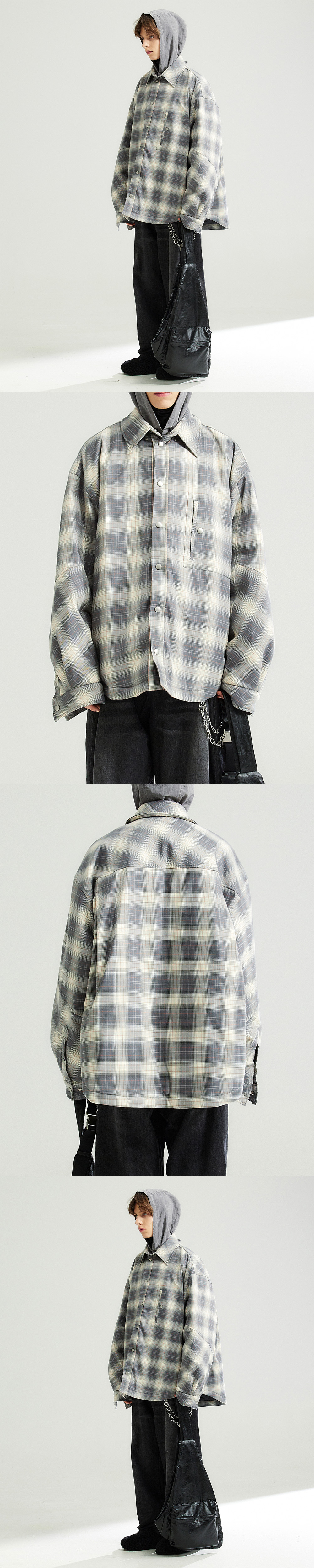 [KREAM 단독] Haleine 2Way Hooded Shirts Down Jacket Grey Check