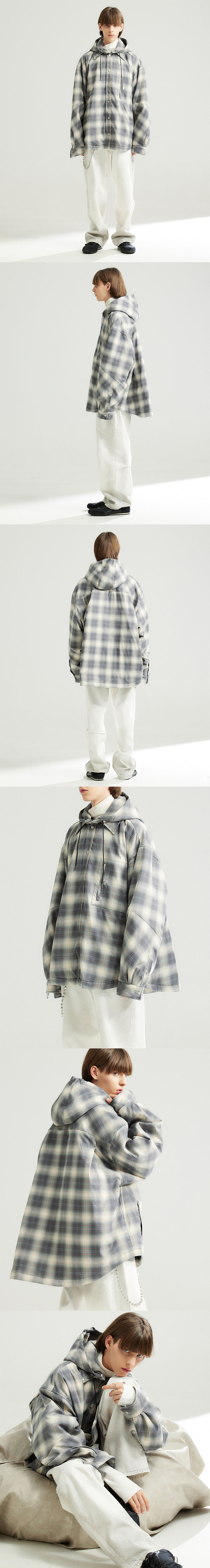 [KREAM 단독] 알렌느 투웨이 후드 셔츠 다운 자켓 그레이 체크