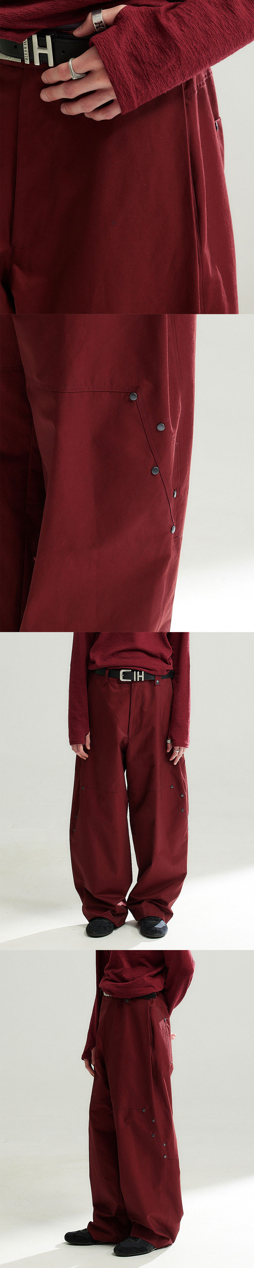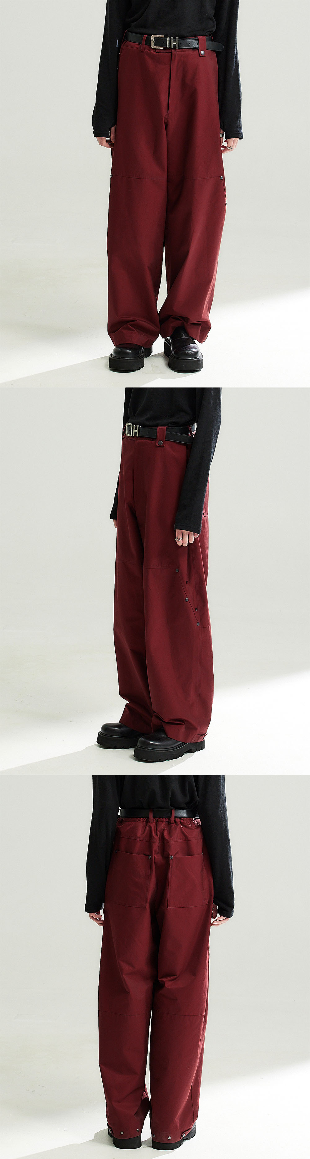 워싱 가공을 하여 은은한 고급스러운 광택감이 도는 면폴리 소재의 카펜터 팬츠 디테일을 차용한 입체적 실루엣의 데님 팬츠입니다. 미니멀한 포인트를 주어 편하게 입기 좋은 제품입니다. -DETAIL- 1.앞뒤 라인이 연결된 카펜터 차용의 입체적인 절개 2.사이드 라인 플리츠 디테일 3.스터드 디테일 4.밑단 스냅으로 밑단 폭 조절 가능 5.허리 밴드 디테일로 편하게 착용 가능 허리 고무 밴딩 디테일로 2인치 가량 늘어남 -COMPOSITION- 면65% 리사이클폴리에스테르35%/ykk zipper/ykk snap/소뿔 단추 드라이 클리닝 midhair model 181/61 2사이즈 착용 midlonghair model 187/67 2사이즈 착용 longhair model 184/64 2사이즈 착용 **모델은 총장이 5cm 더 긴 제품을 착용**