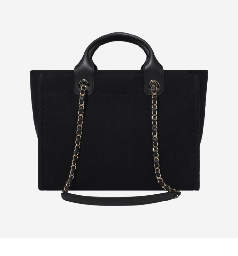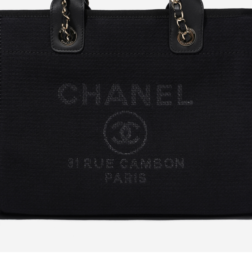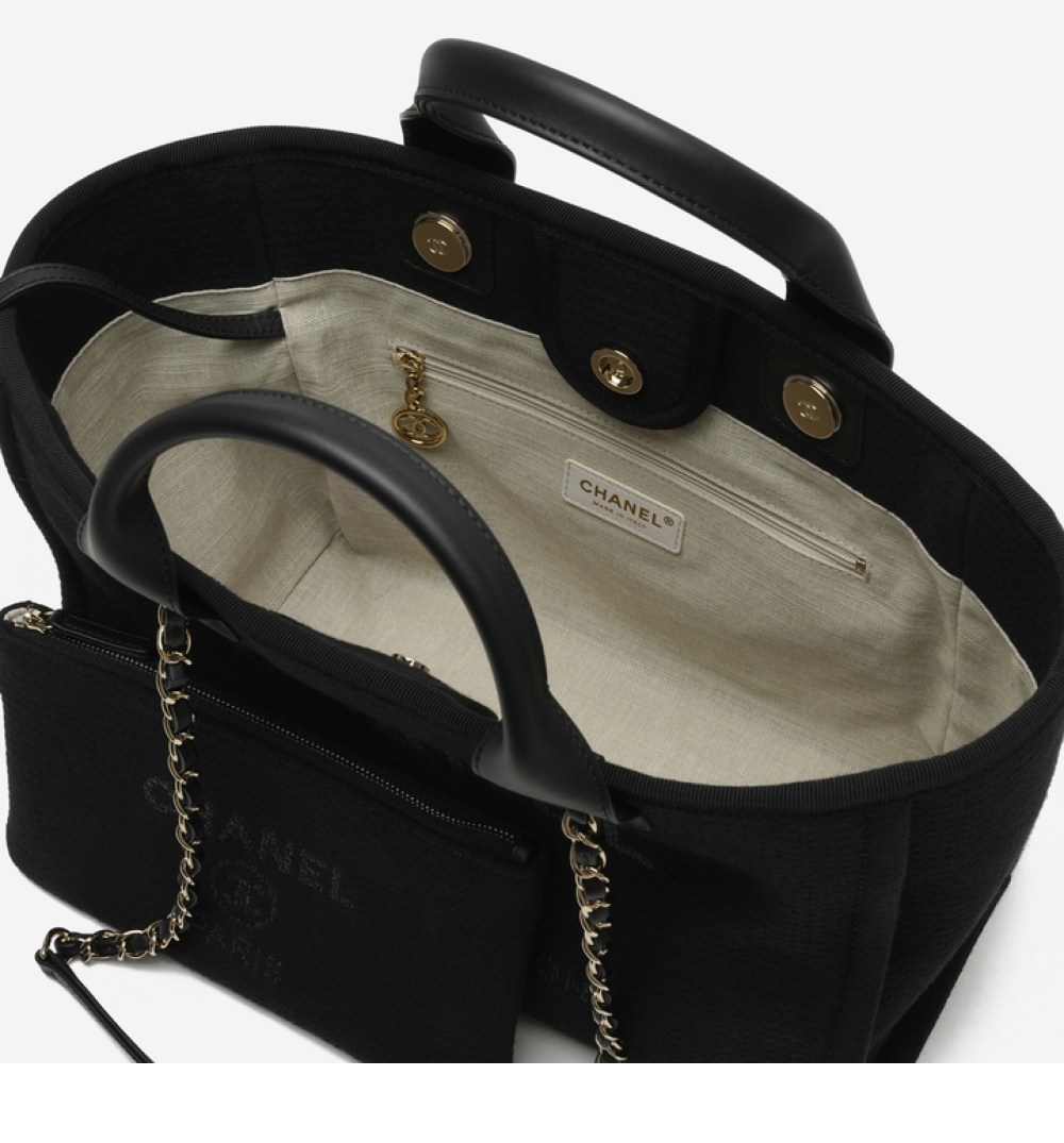 샤넬 스몰 쇼핑백 믹스드 파이버 카프스킨 & 골드 메탈 블랙