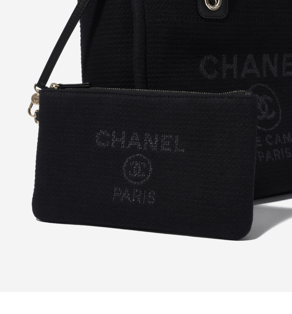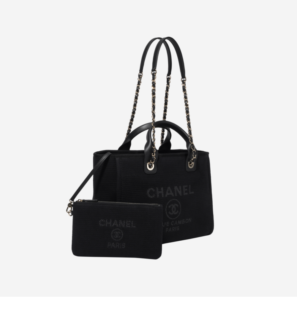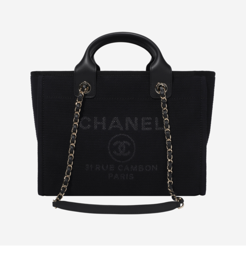 샤넬 스몰 쇼핑백 믹스드 파이버 카프스킨 & 골드 메탈 블랙