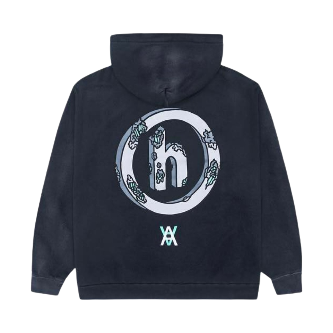 히든 NY x 다니엘 아샴 이로디드 H 로고 후드 빈티지 워시 블랙
