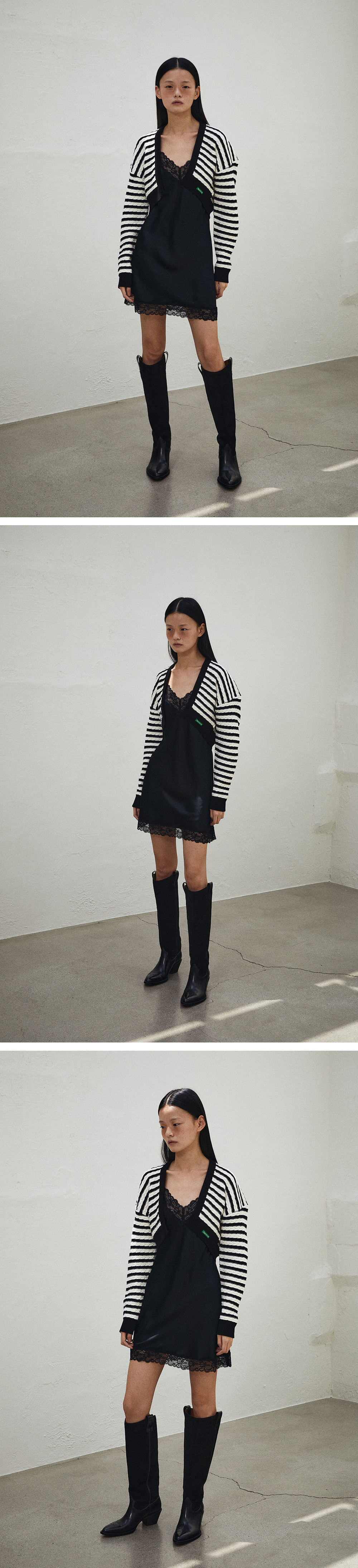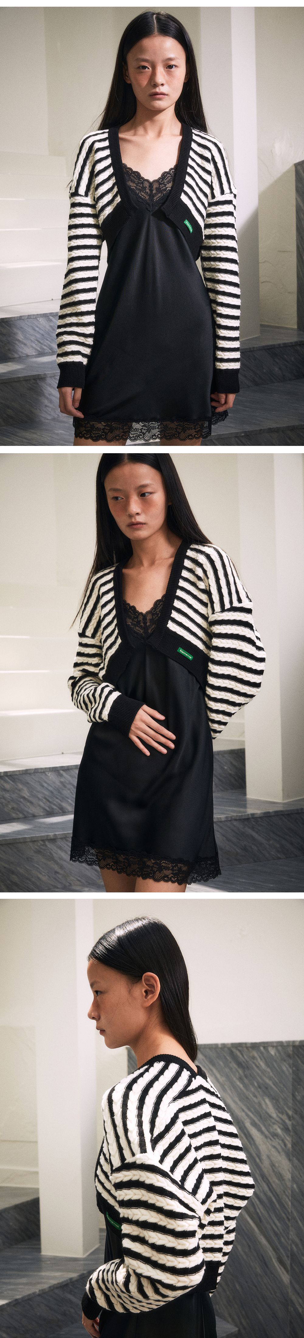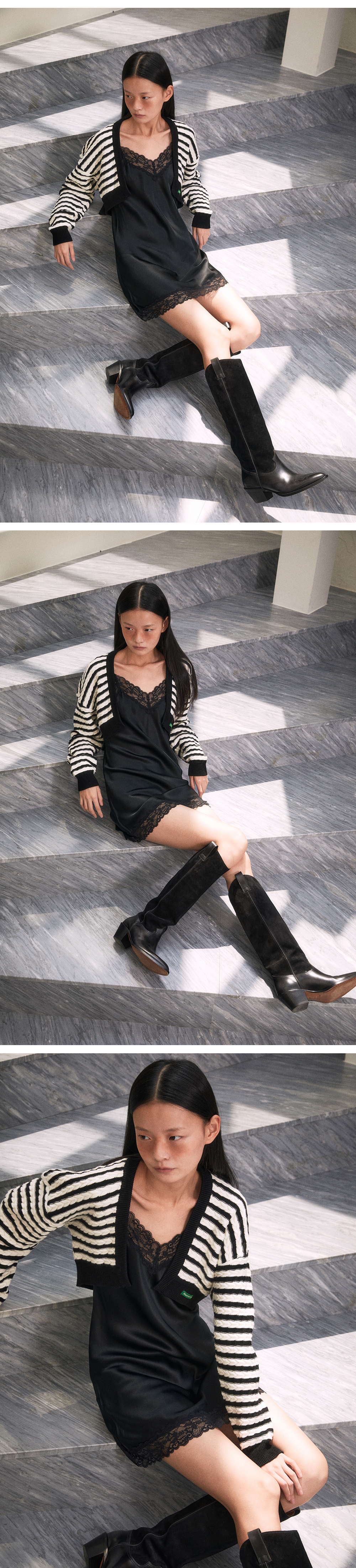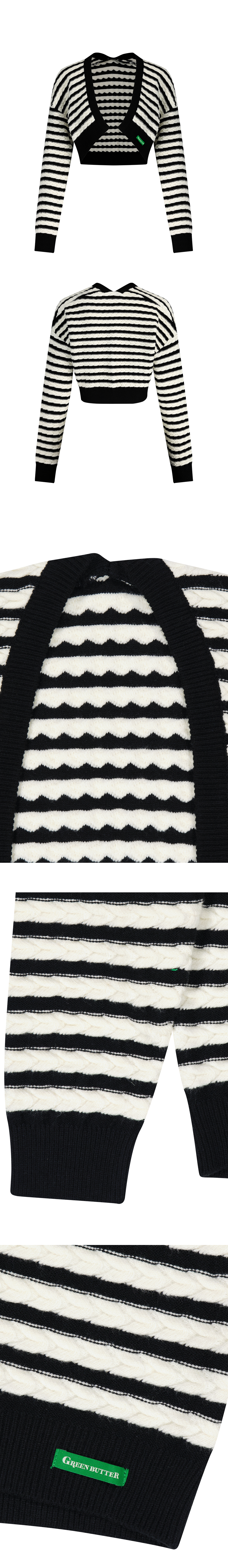 그린버터 우먼 헤링본 스트라이프 니트 볼레로 블랙