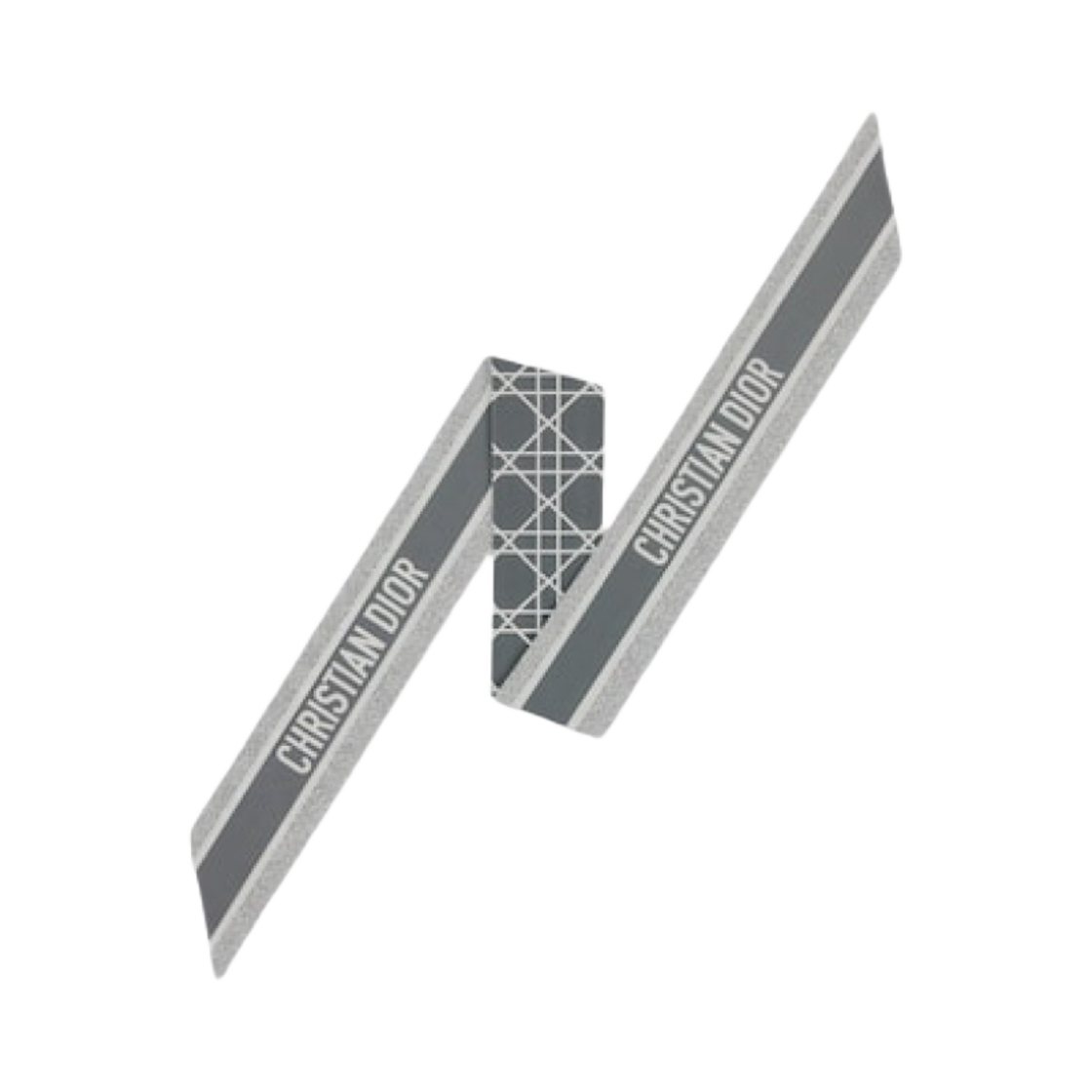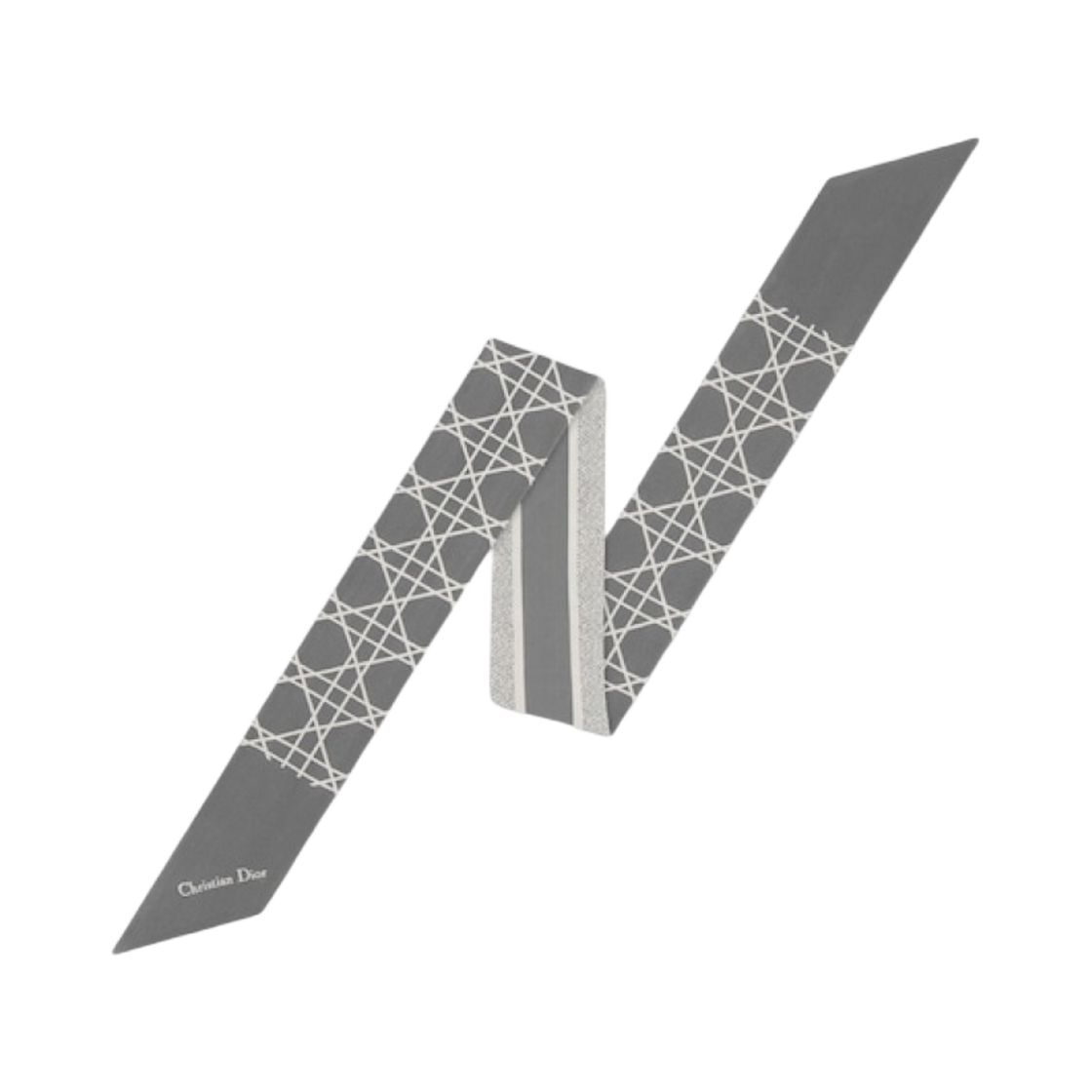 (W) Dior Cannage Mitzah Scarf Silk Twill Ivory Grey