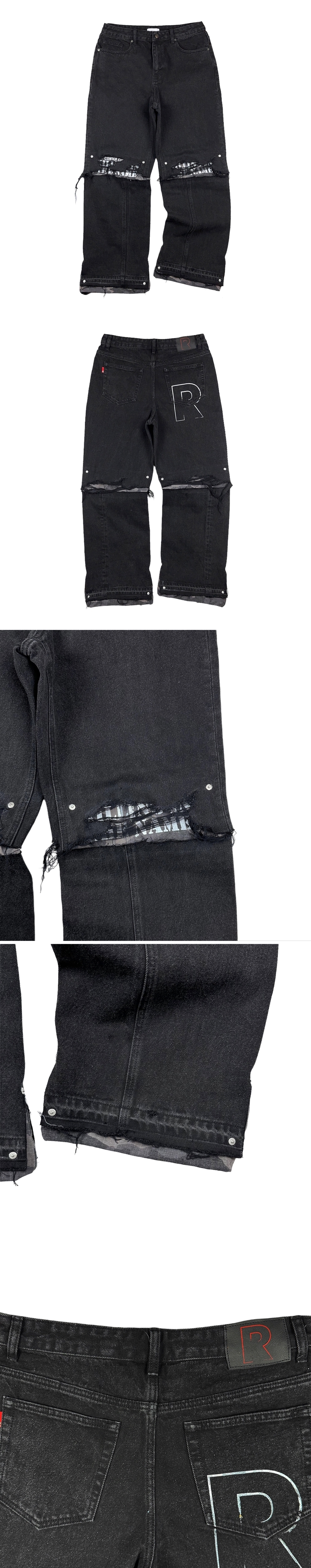레저렉션13 니 디스트로이드 데님 팬츠 블랙