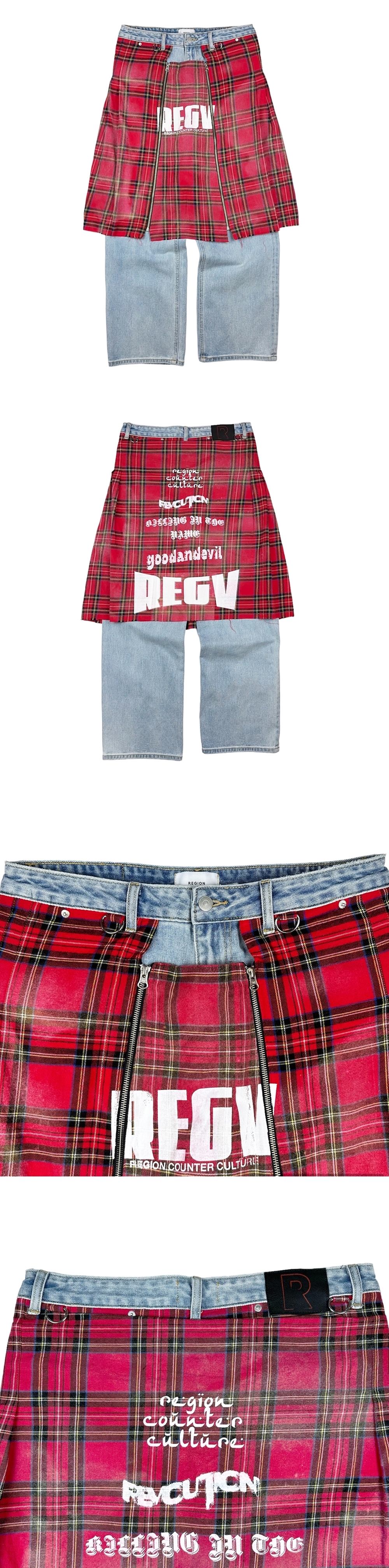 레저렉션13 체크 스커트 도킹 데님 팬츠 라이트 블루