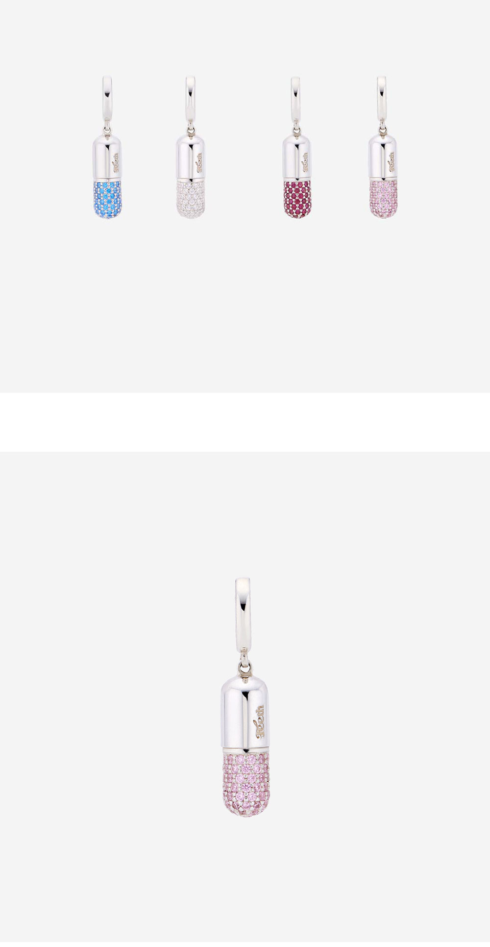 ABOUT 캡슐 모양의 알약을 모델로 한 펜던트에는 쉽게 체인을 탈부착할 수 있는 상단 링크가 있습니다. 상단에는 Teeth 로고가 섬세하게 새겨져 있으며, 30년 경력의 숙련된 기술자가 꼼꼼하게 수작업으로 세팅한 스와로브스키 스톤이 특징입니다. INFORMATION Material: 925 Silver, Swarovski Stone Chain: 40-45cm