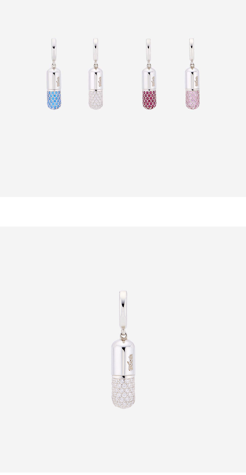 캡슐 모양의 알약을 모델로 한 펜던트에는 쉽게 체인을 탈부착할 수 있는 상단 링크가 있습니다. 상단에는 Teeth 로고가 섬세하게 새겨져 있으며, 30년 경력의 숙련된 기술자가 꼼꼼하게 수작업으로 세팅한 스와로브스키 스톤이 특징입니다. INFORMATION Material: 925 Silver, Swarovski Stone (Chain) 40-45cm