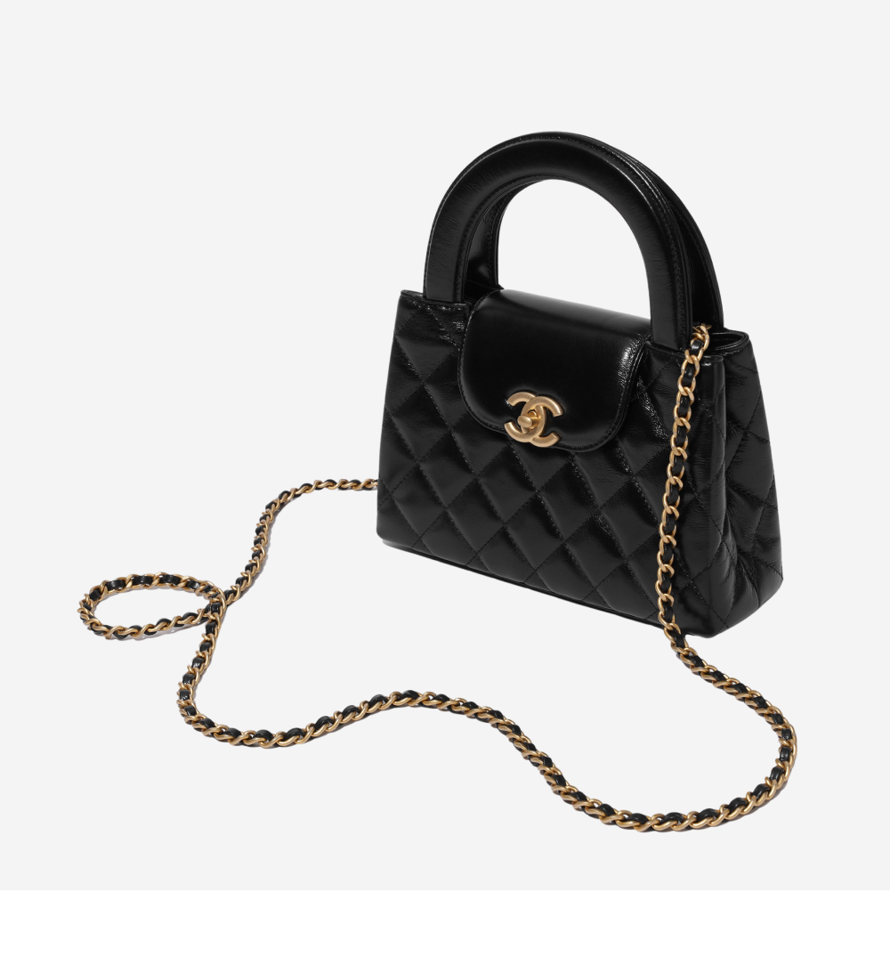 샤넬 미니 쇼핑백 샤이니 빈티지 카프스킨 & 골드 메탈 블랙