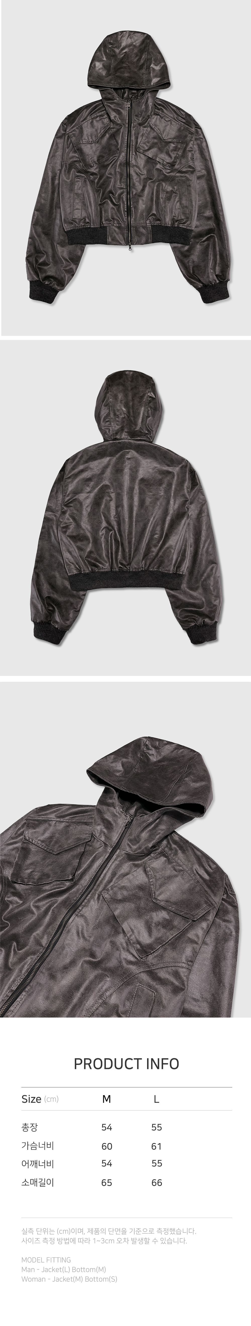 풀오브썬 후드 카고 크롭 레더 자켓 그레이