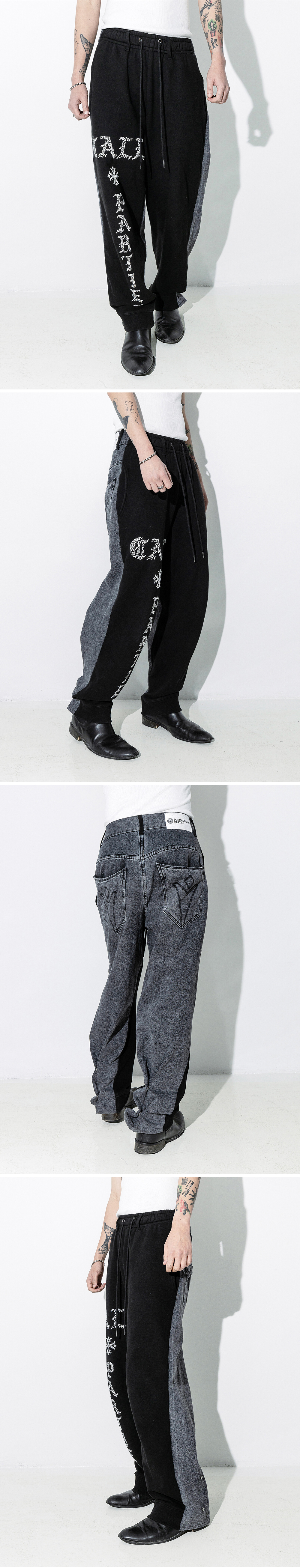 100% Cotton Oversized Silhouette Back Pocket Signature Stitch 앞뒤 다른 더블페이스 팬츠입니다. 허리를 제외한 모든 부분의 너비가 크며 신발 위로 가장 적당하게 떨어질 수 있는 밑단과 두께감이 있는 원단의 선택으로 이상적인 오버사이징을 완성하였고 바지 후면 밑단의 스냅을 활용한 배기와 조거 느낌으로 변형이 가능하여 다채로운 핏 연출을 즐기실 수 있습니다.