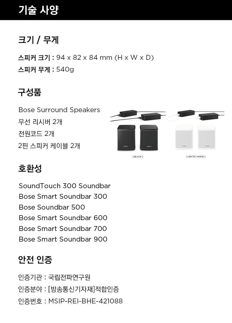 보스 서라운드 스피커 아크틱 화이트
