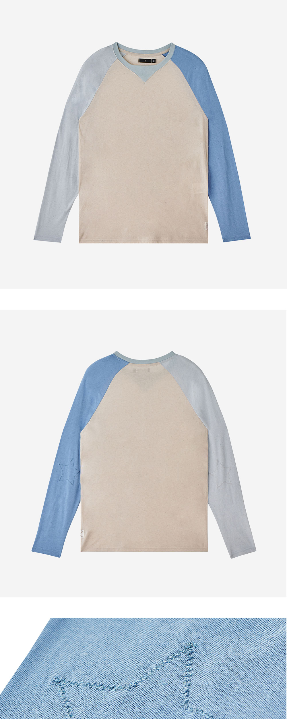 사파리스팟 코티지 린넨 나그랑 롱 슬리브 티셔츠 스카이 베이지 블루