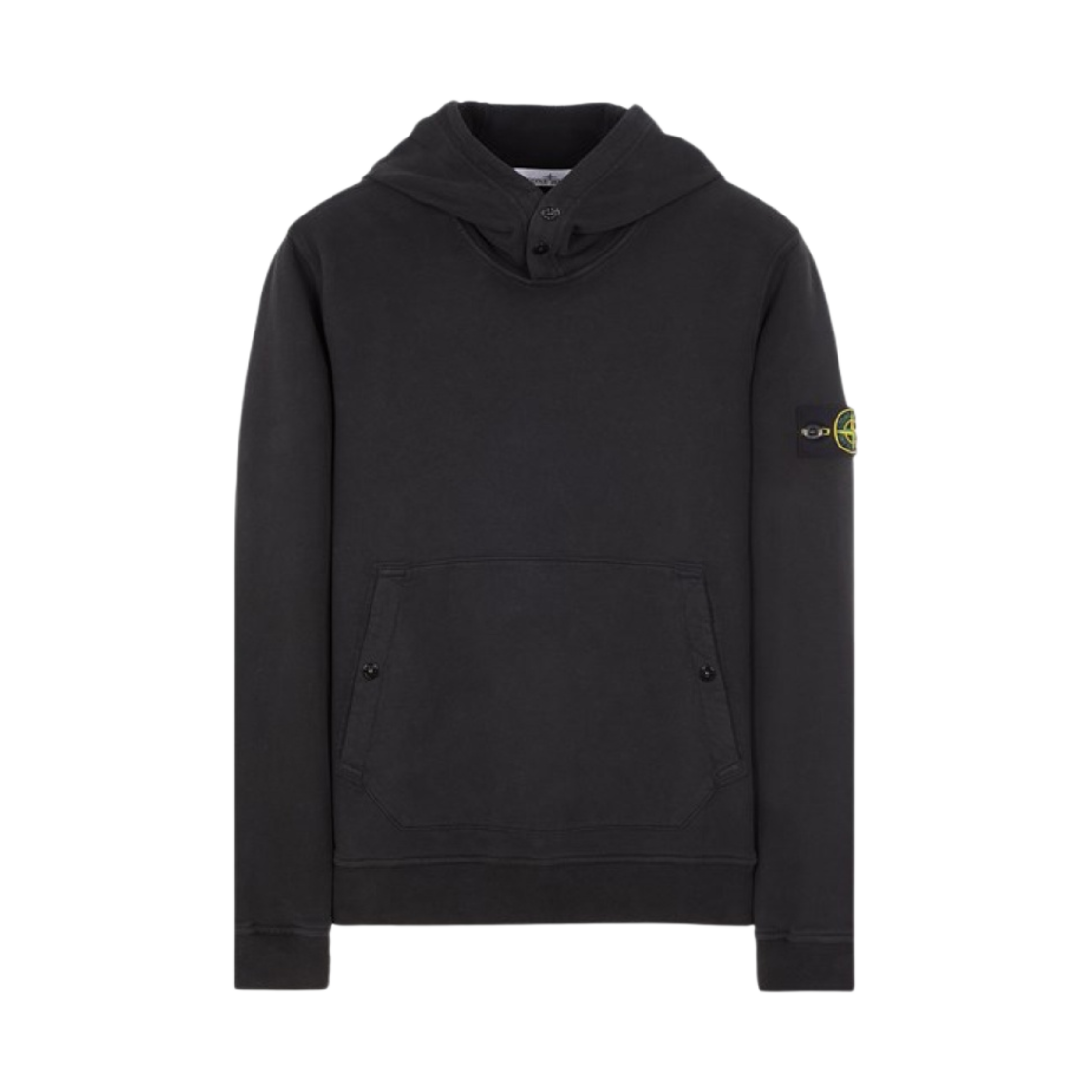 스톤 아일랜드 61720 브러쉬드 코튼 플리스 가먼트 다이드 크루넥 후드 스웨트셔츠 블랙 - 23FW