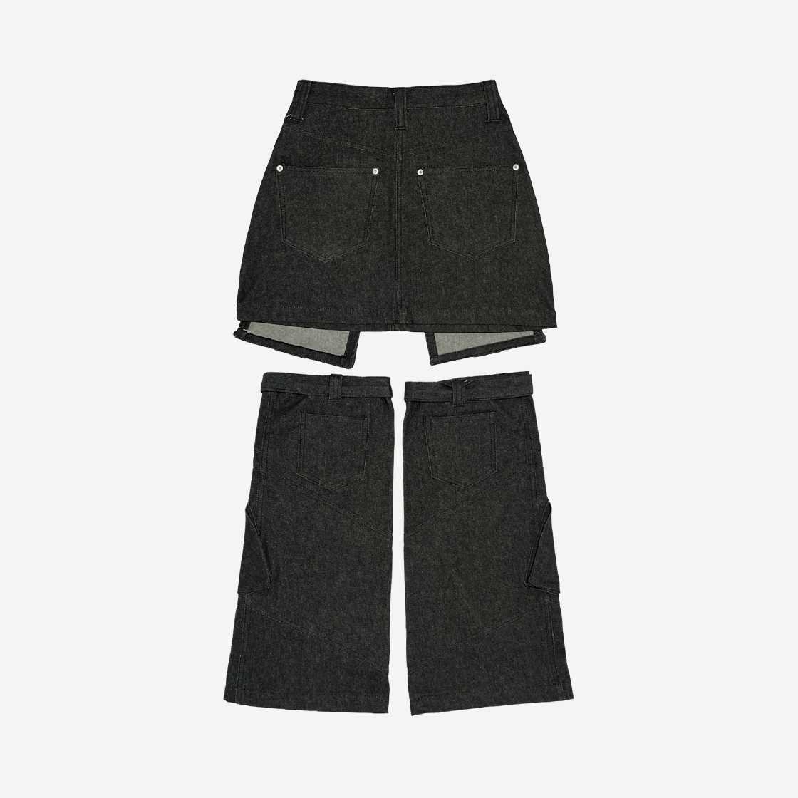 Full of Ssun Cutout Denim Mini Skirts Leg Warmar Set Black