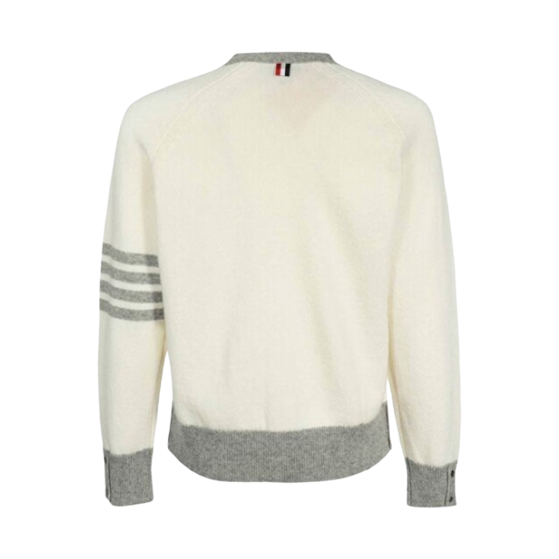 Thom Browne Shetland Wool Raglan 4-Bar Relaxed V-Neck Cardigan White