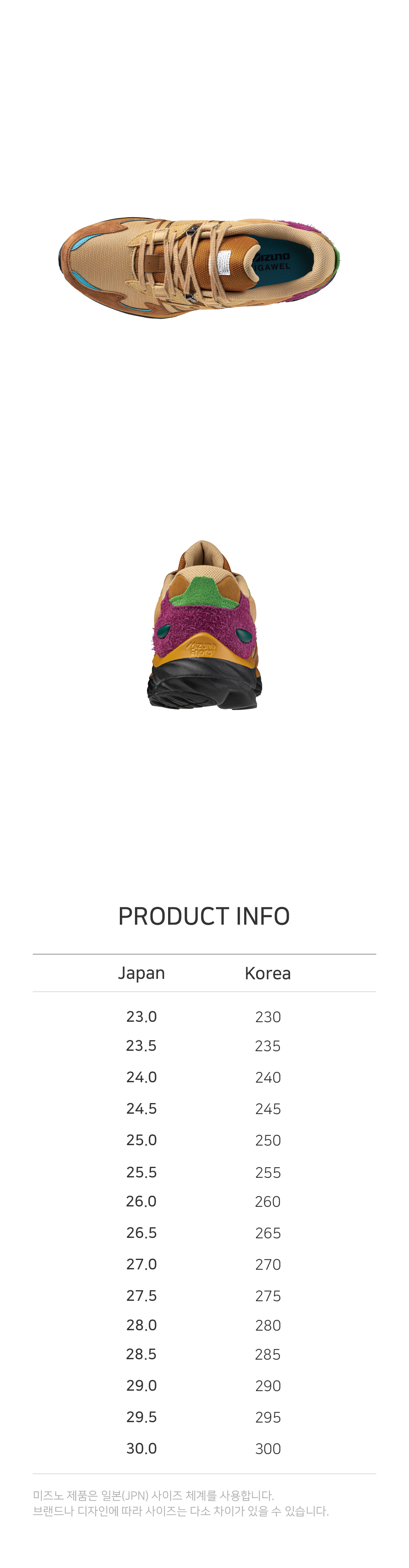 미즈노와 디가웰의 두 번째 콜라보레이션으로 WAVE RIDER β를 베이스로 제작된 스포츠스타일 슈즈입니다.