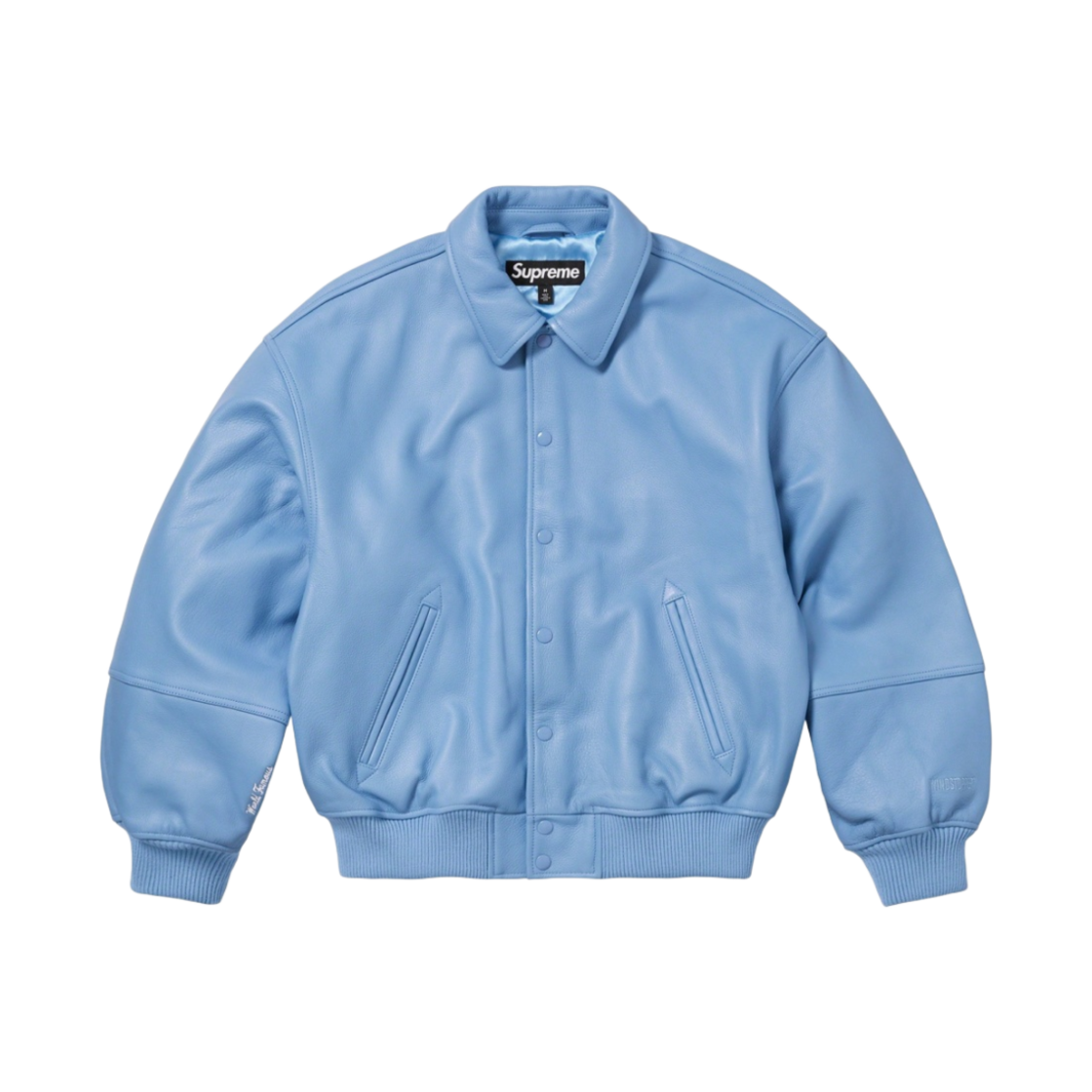 Supreme Gore-Tex Infinium Windstopper Leather Varsity Jacket Light Blue - 23FW