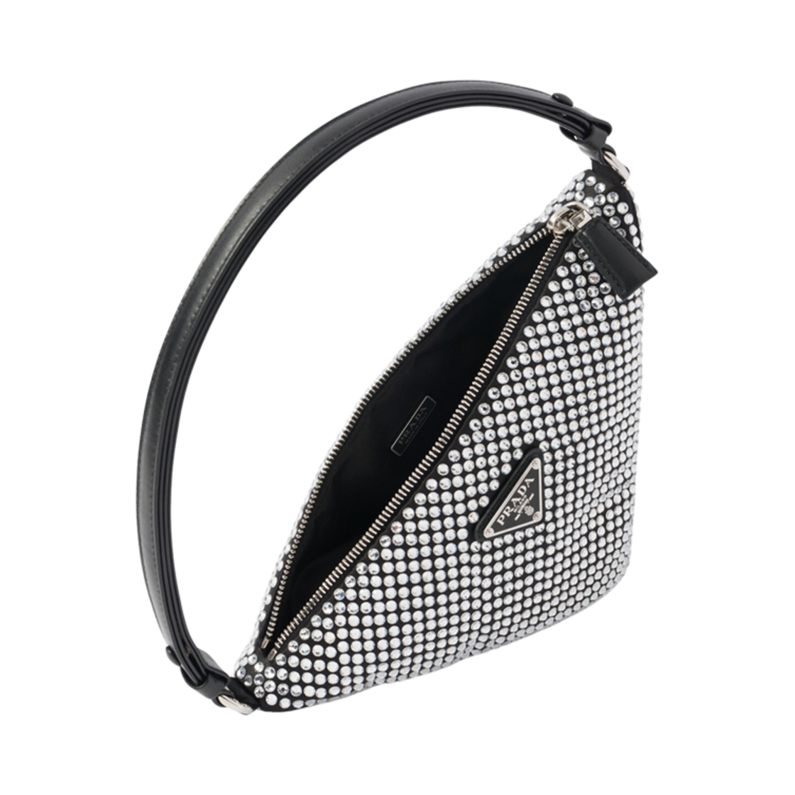 프라다 크리스탈 스터드 사틴 파우치 크리스탈
