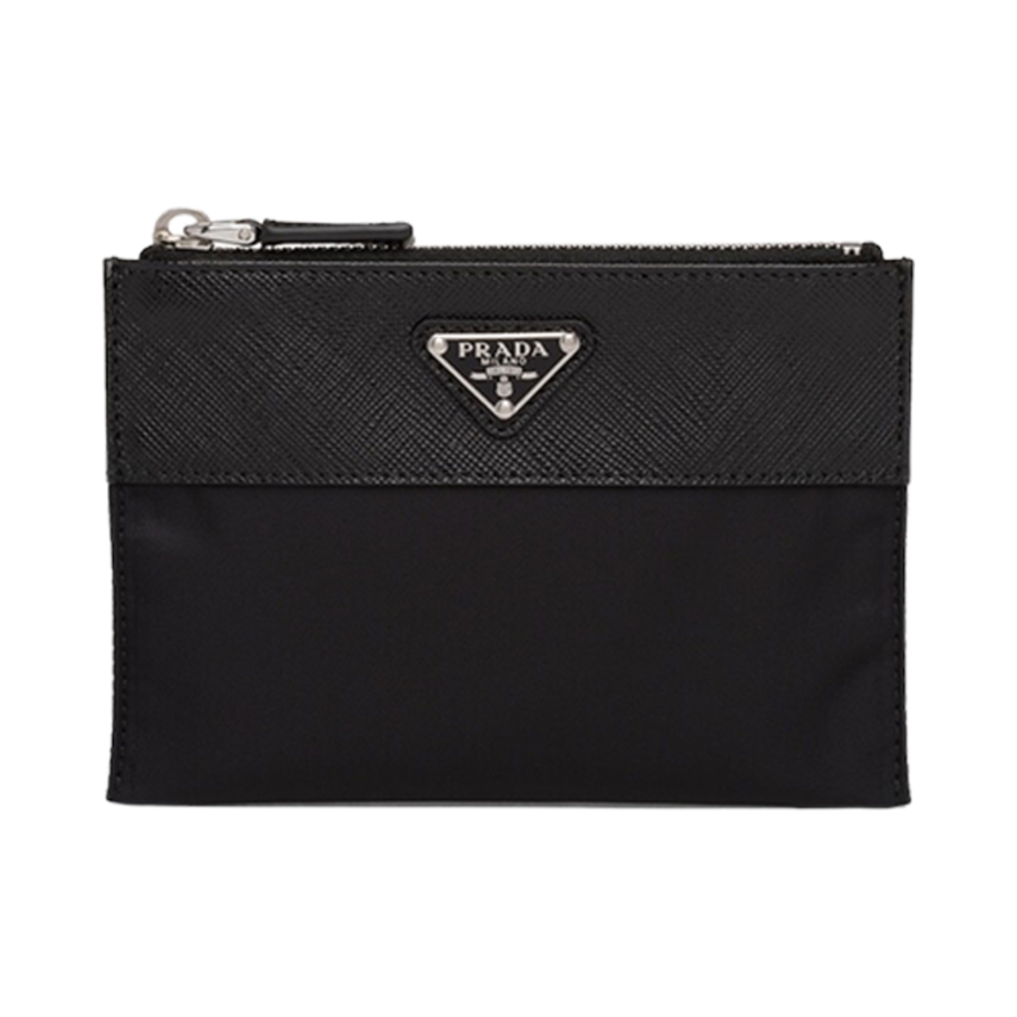 Prada Re-Nylon Saffiano Leather Pouch Wallet Black