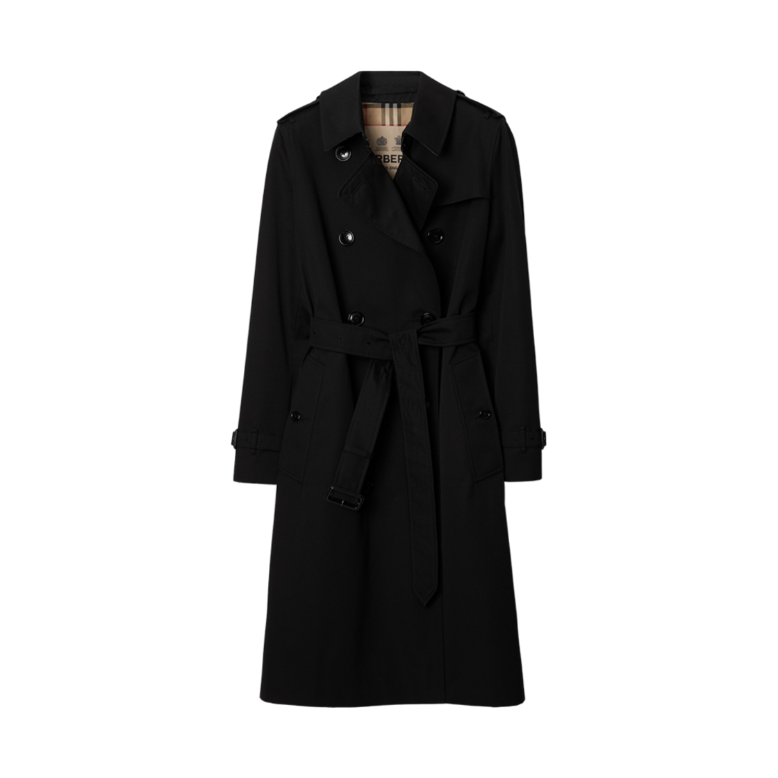 (W) Burberry Long Kensington Heritage Trench Coat Black