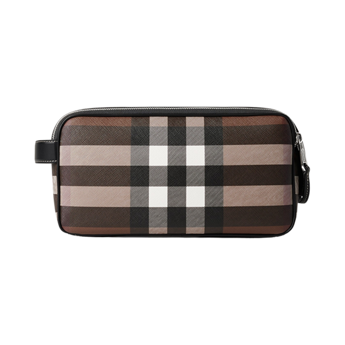 버버리 체크 앤 레더 트래블 파우치 다크 버치 브라운