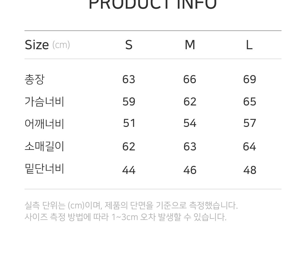 실측 단위는 cm이며, 제품의 단면을 기준으로 측정했습니다.