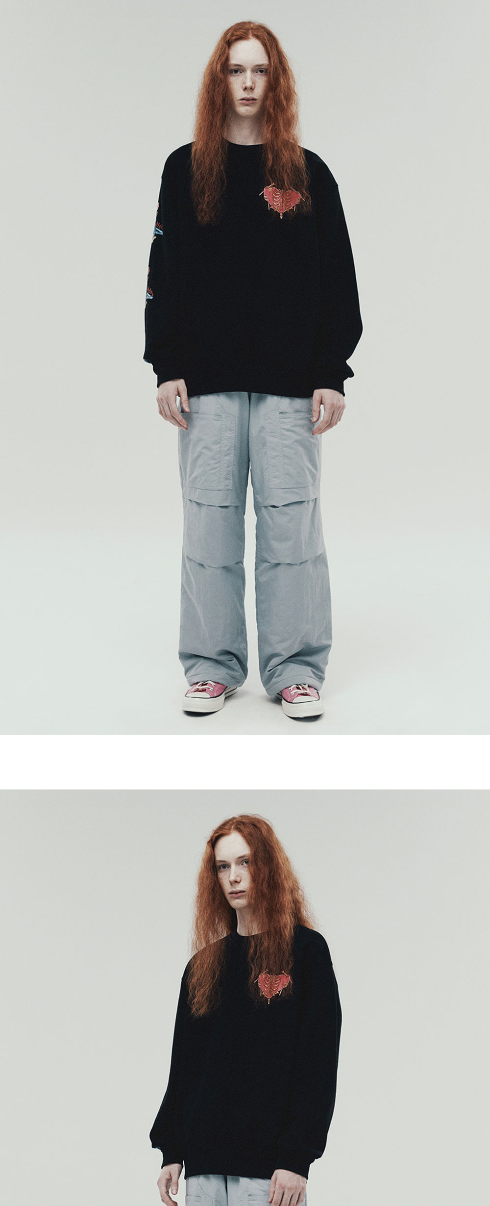Material Cotton 100% Wearing size Male Model(Brown Hair) is 180cm and wears size L Male Model(Orange Hair) is 186cm and wears size L Female Model is 174cm and wears size S 실제 컬러는 제품컷의 컬러와 가장 유사하오니 참고 부탁드립니다.