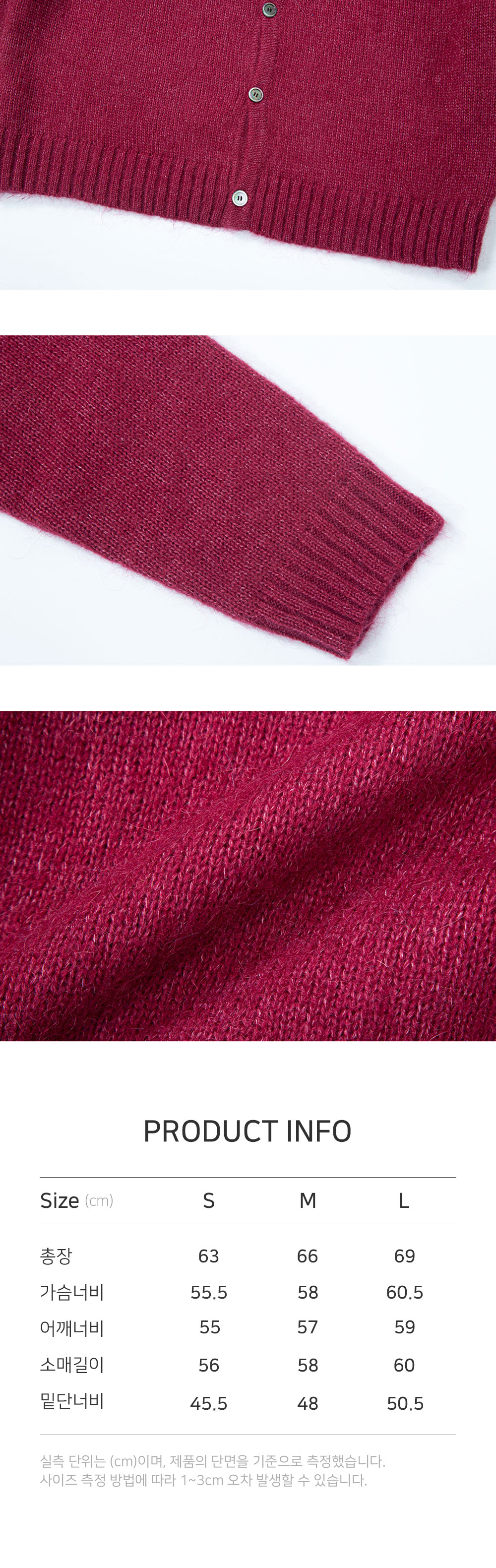 실측 단위는 cm이며, 제품의 단면을 기준으로 측정했습니다.