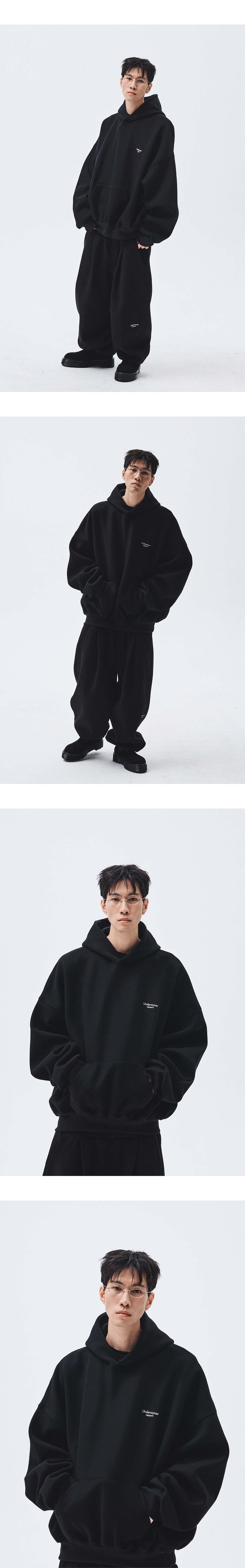 언더마이카 무.10 안티 Fxxking 로고 플레이 오버사이즈 본디드 후디 올리브
