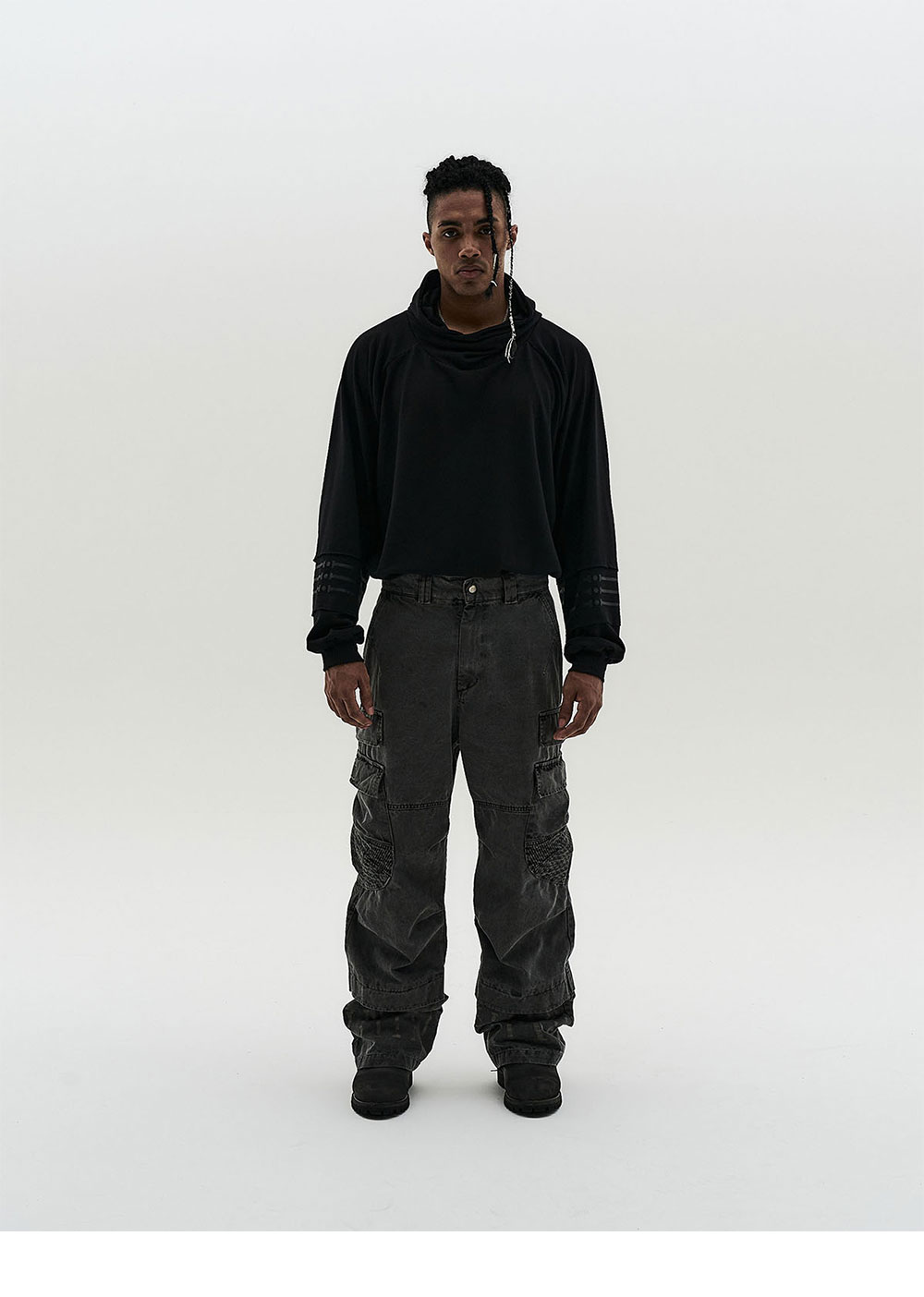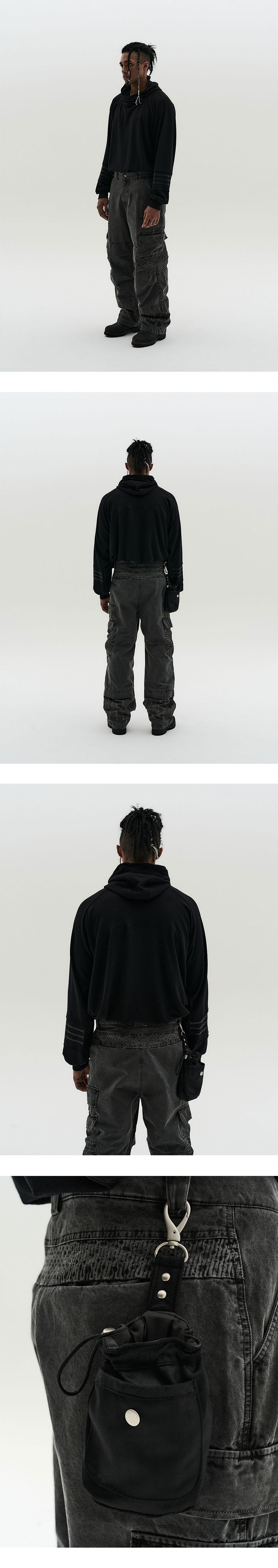 SPECIAL WOVEN CRACK FABRIC OUTSIDE SNAP POCKET STRING STOPPER DETAIL