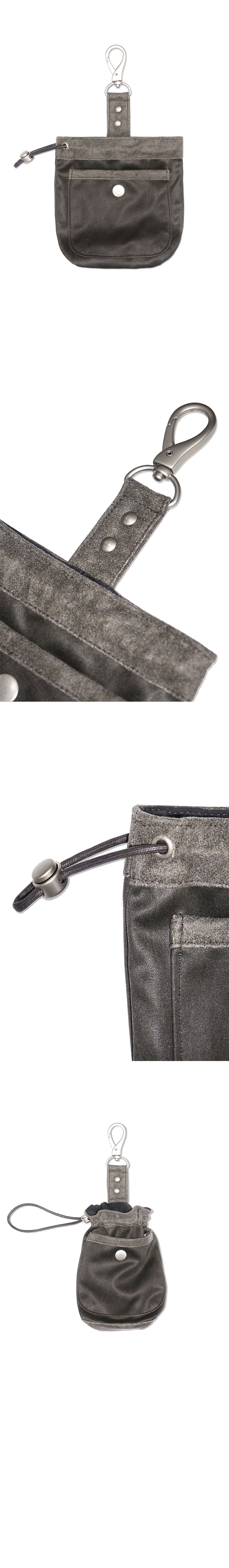 SPECIAL WOVEN CRACK FABRIC OUTSIDE SNAP POCKET STRING STOPPER DETAIL