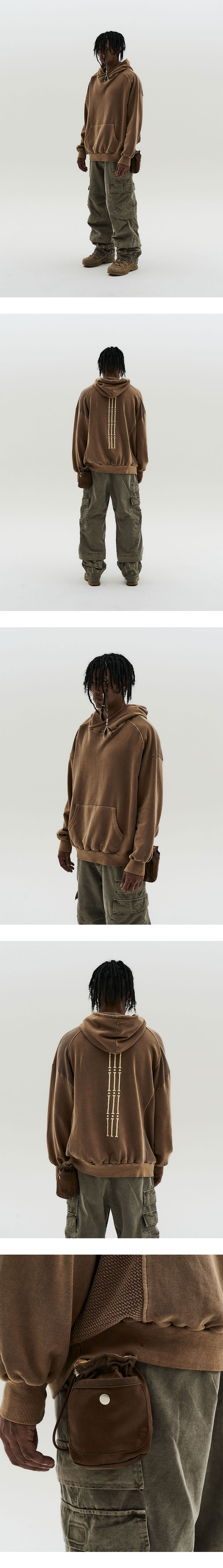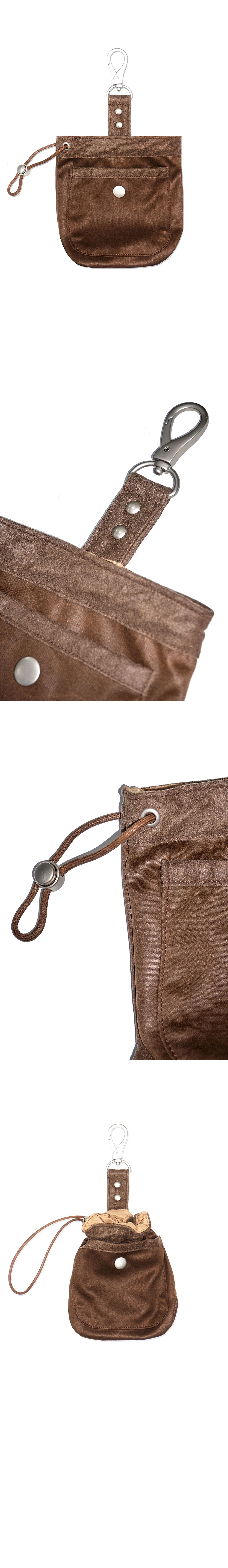 SPECIAL WOVEN CRACK FABRIC OUTSIDE SNAP POCKET STRING STOPPER DETAIL