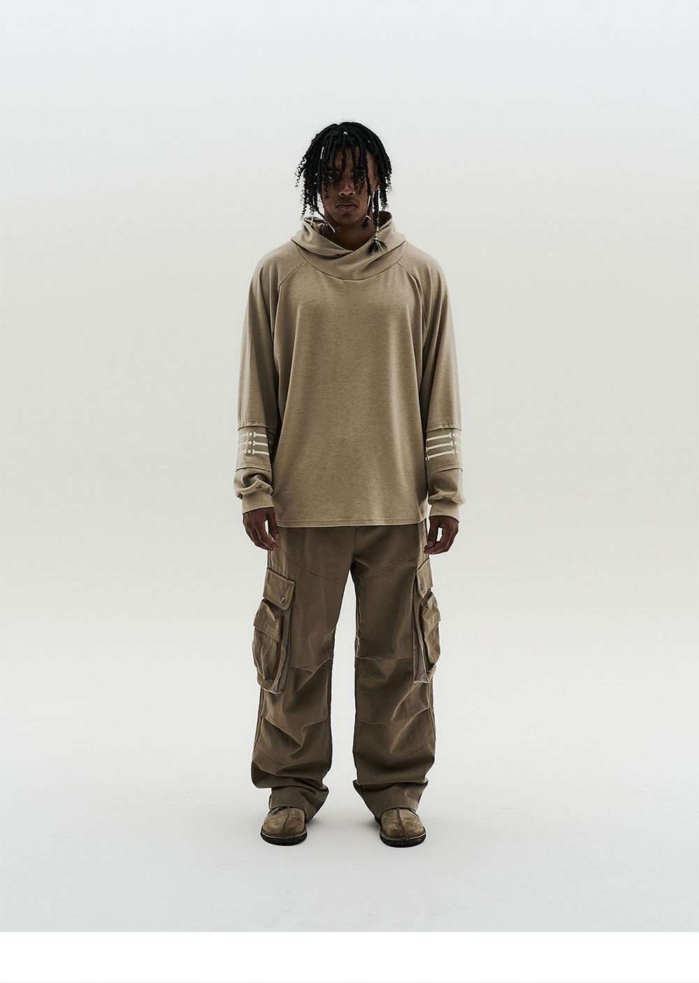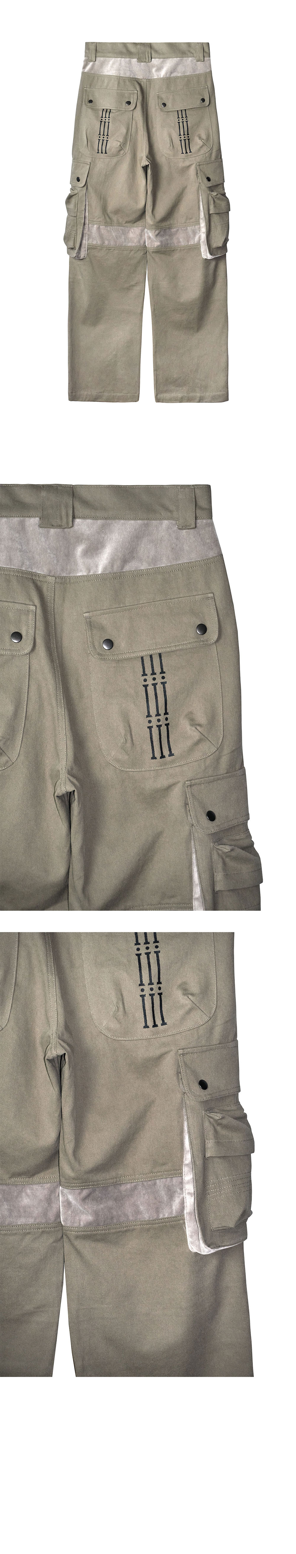 YKK ZIPPER FRONT TUCK DETAIL SIDE 3D CARGO DESIGN VELVET PANELS THROUGHOUT BACK POCKET 'NATIVE' GRAPHIC