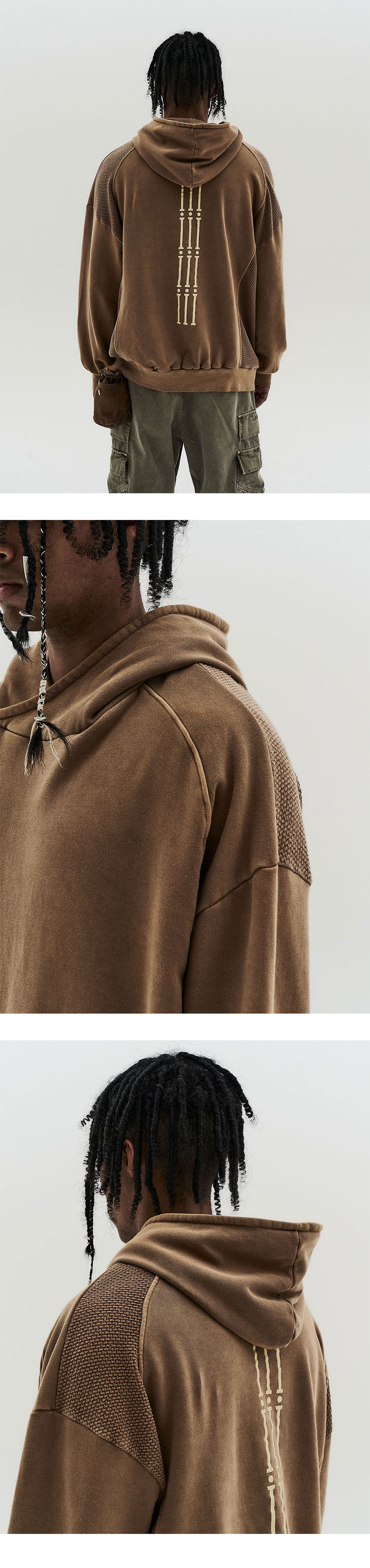 PIGMENT WASHING DYEING TECHNIQUE BACK 'NATIVE' GRAPHIC BACK EMBOSSED FABRIC CURVE PANEL