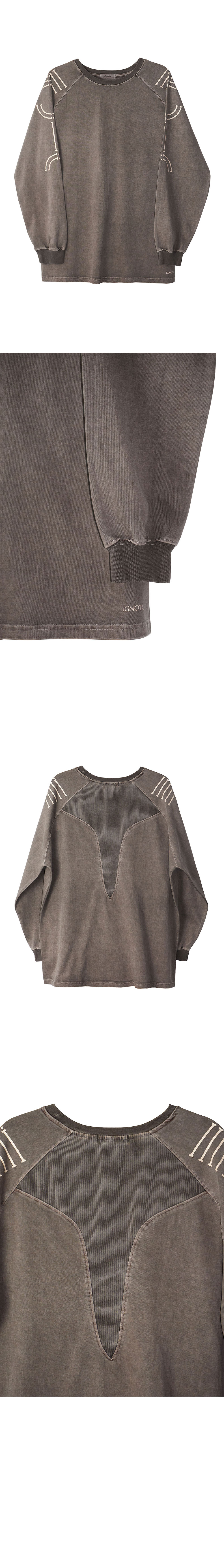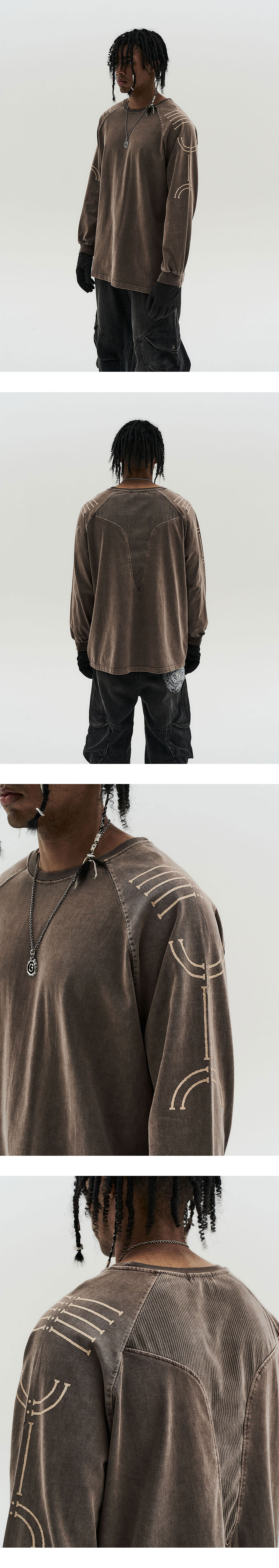 PIGMENT WASHING DYEING TECHNIQUE RAGLAN DESIGN FRONT HEM IGNOTA LOGO GRAPHIC SLEEVE 'NATIVE' GRAPHIC BACK RIBBED FABRIC CURVE PANEL