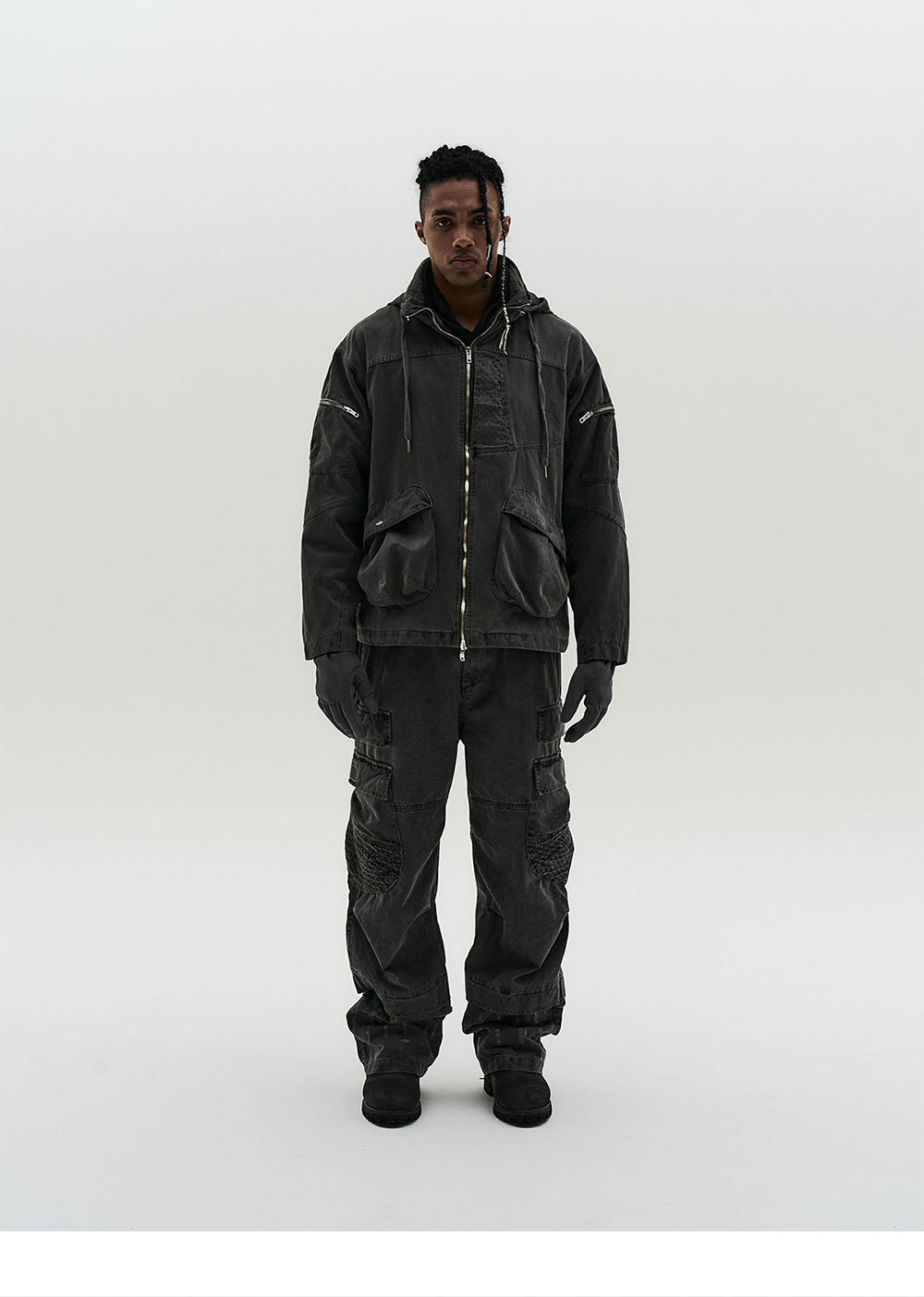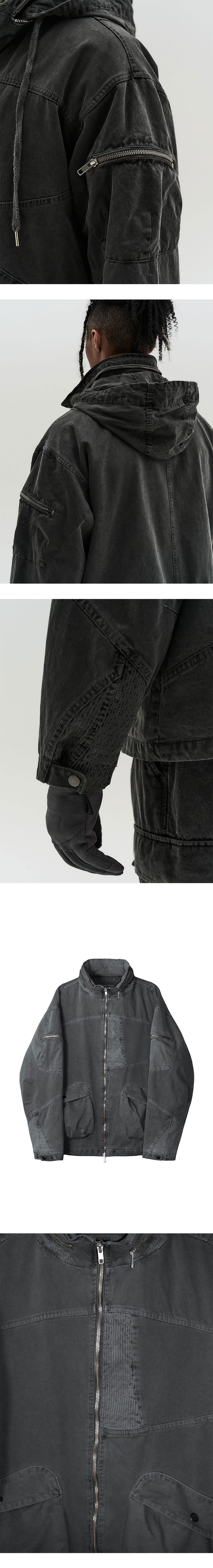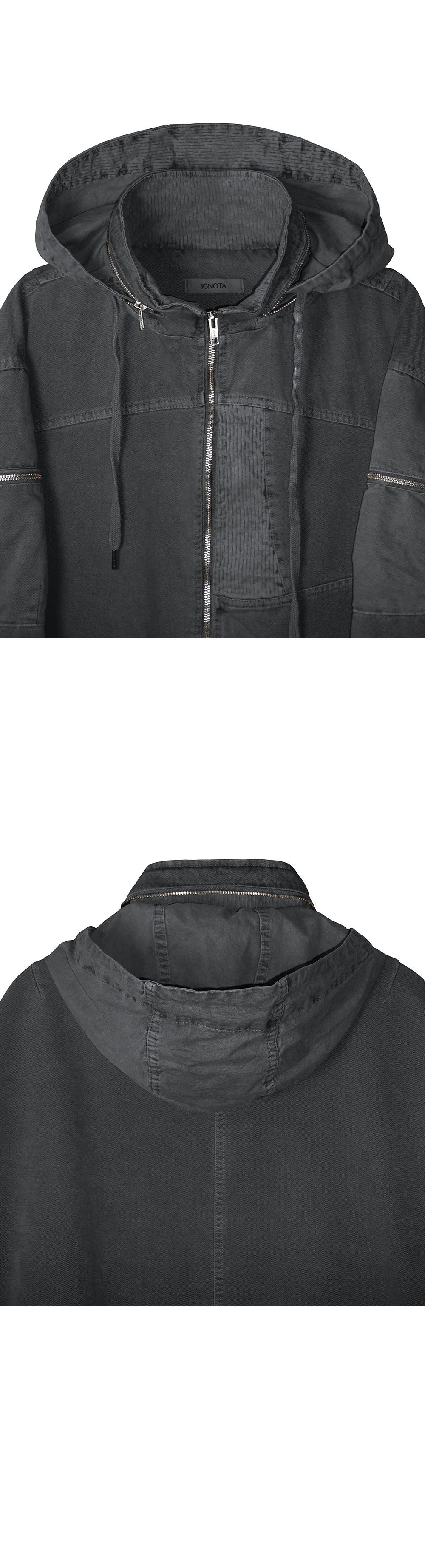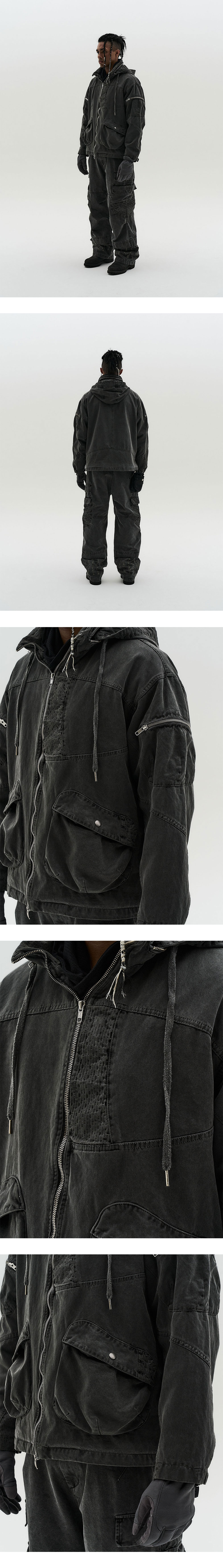 YKK 2WAY ZIPPER PIGMENT WASHING DYEING TECHNIQUE HIDDEN HOODIE FRONT CHEST HIDDEN POCKET FRONT 3D POCKET SLEEVE HEM SNAP ZIPPER POCKET ON INNER
