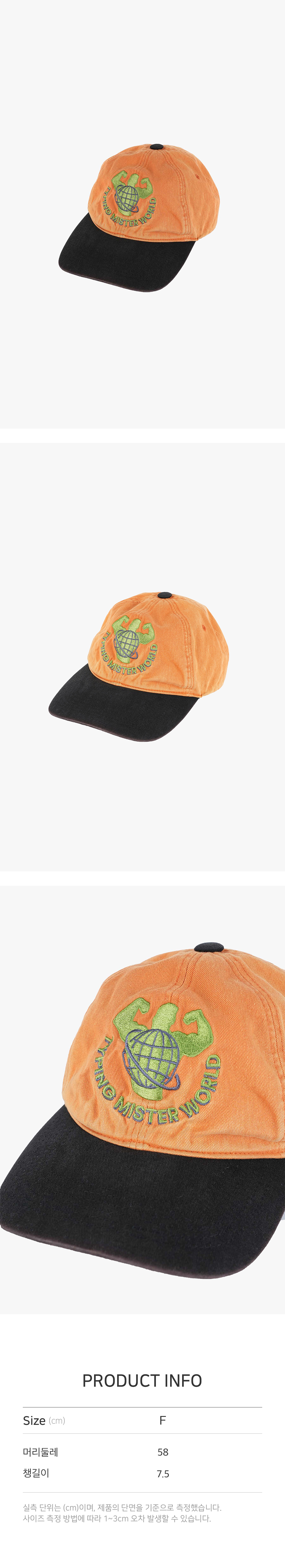 90년대 초반 머스큘라 그래픽을 패러디한 자수와 디렉터가 오랜시간 좋아했던 밴드의 월드 투어 그래픽을 패러디한 자수가 새겨진 볼 캡 입니다. 밀도 높은 자수와 다양한 컬러웨이로 조화롭게 구성하여 완성된 그래픽을 자수로 새긴 후, 완제품 상태에서 워싱하고 탈색시켜 오랜시간 사용한 세월의 궤적을 느낄 수 있는 빈티지 무드의 캡입니다. 처음 깊이감보다 조금 더 얕은 깊이감을 원하는 경우 제품을 1회 가볍게 세탁하신 후 착용해주시면 더 빈티지한 무드를 느끼실 수 있습니다.
