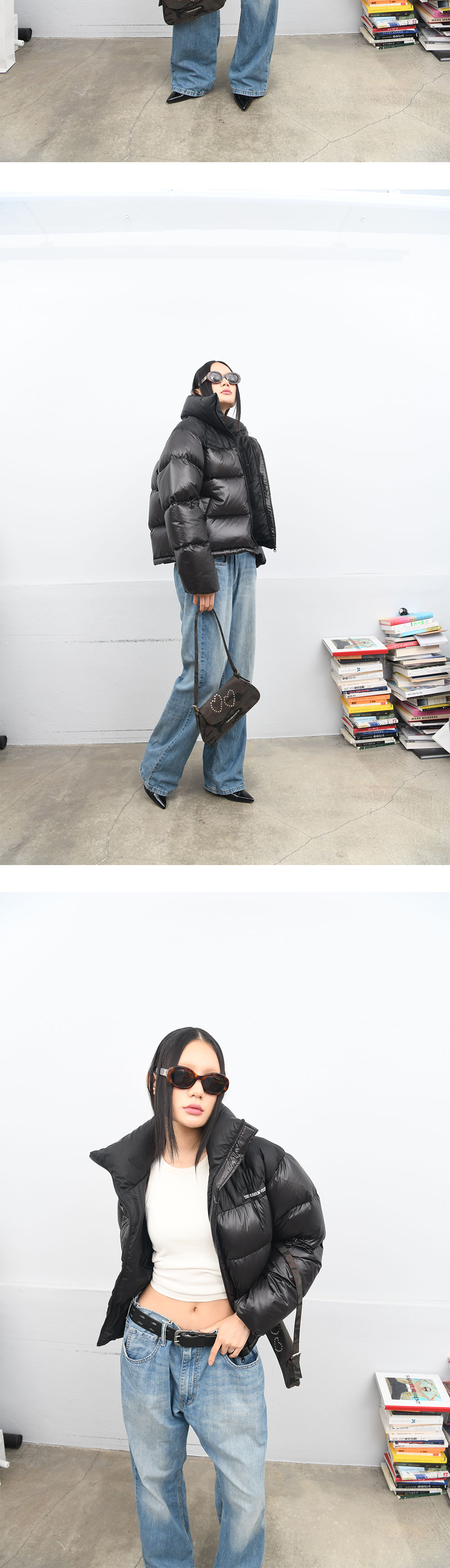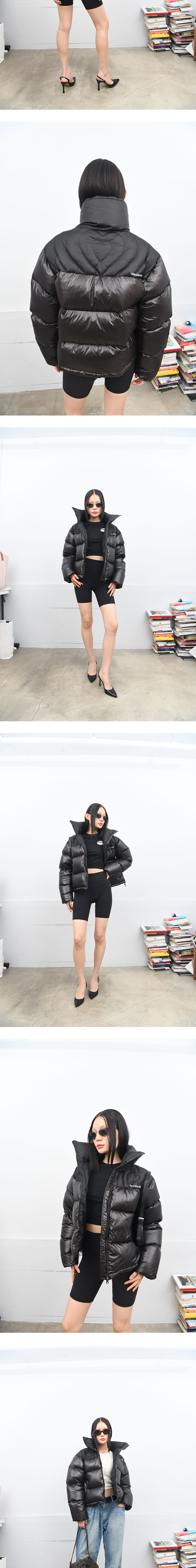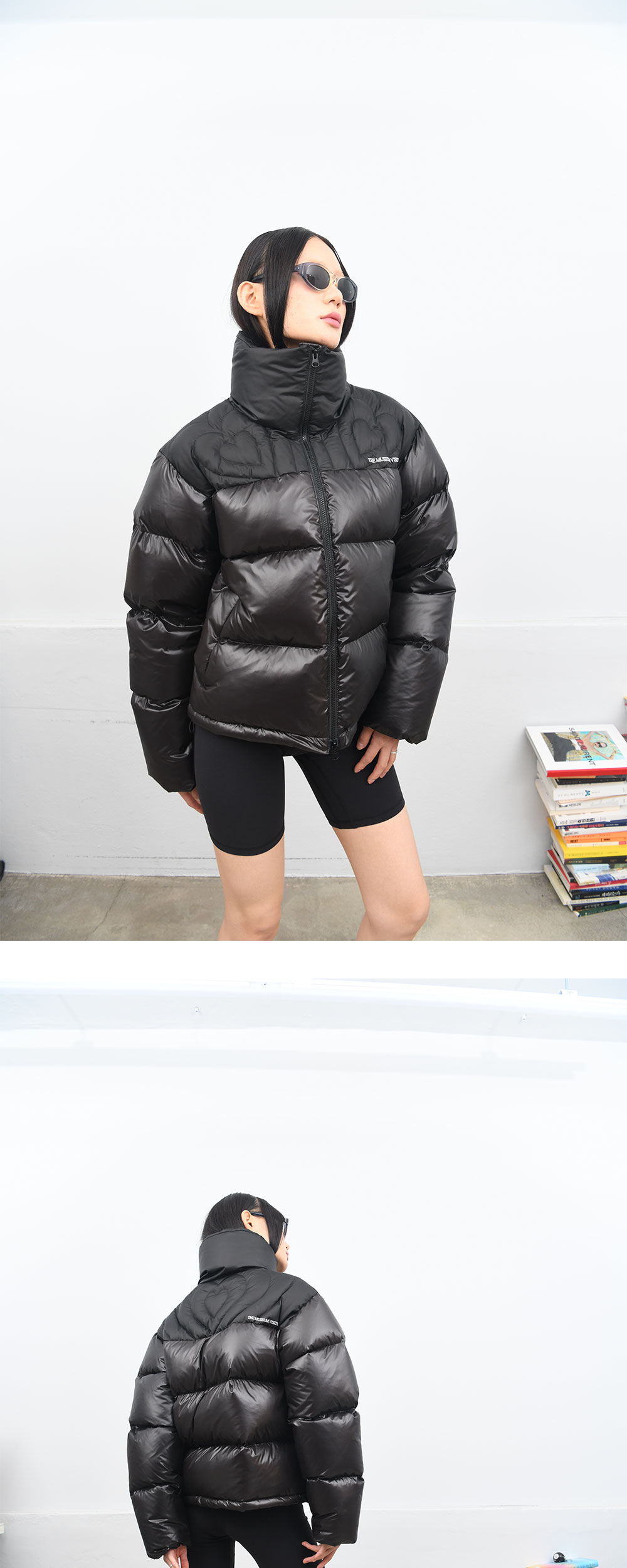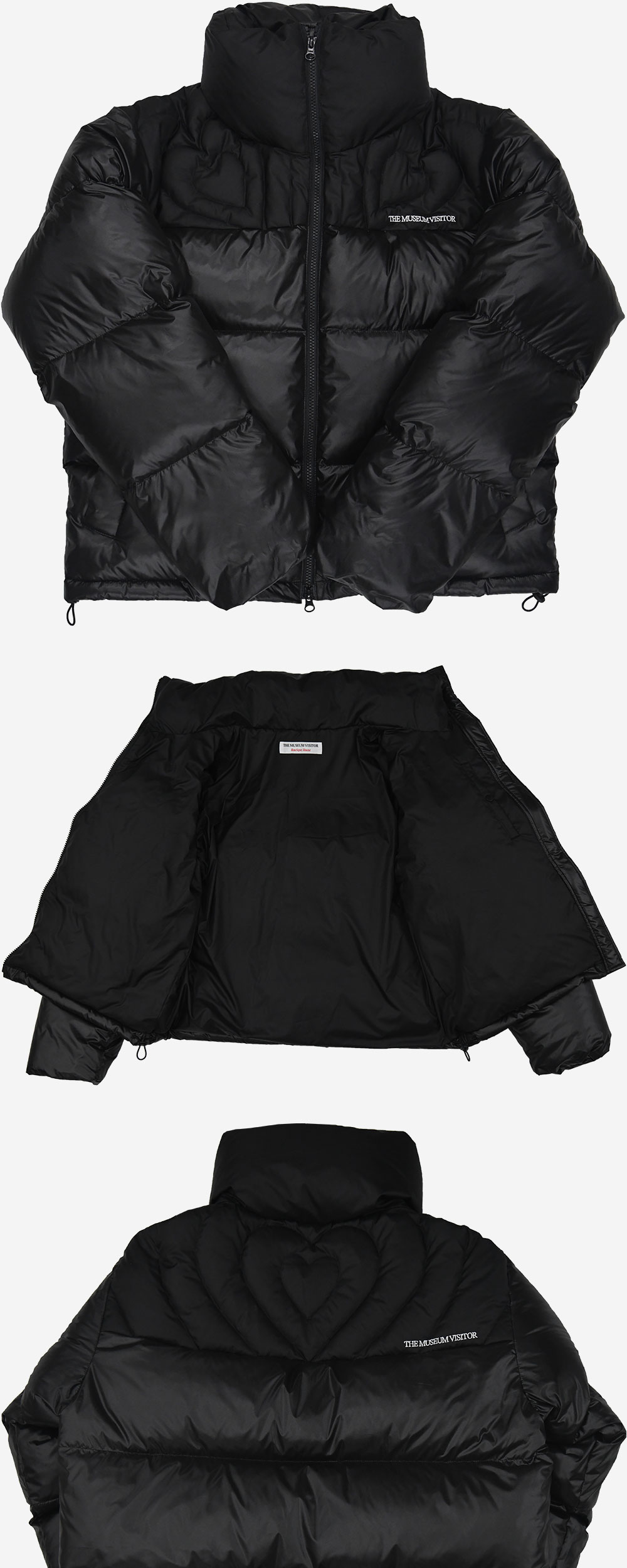 더뮤지엄비지터 크림 하트 스티치드 푸퍼 다운 자켓 글로시 블랙