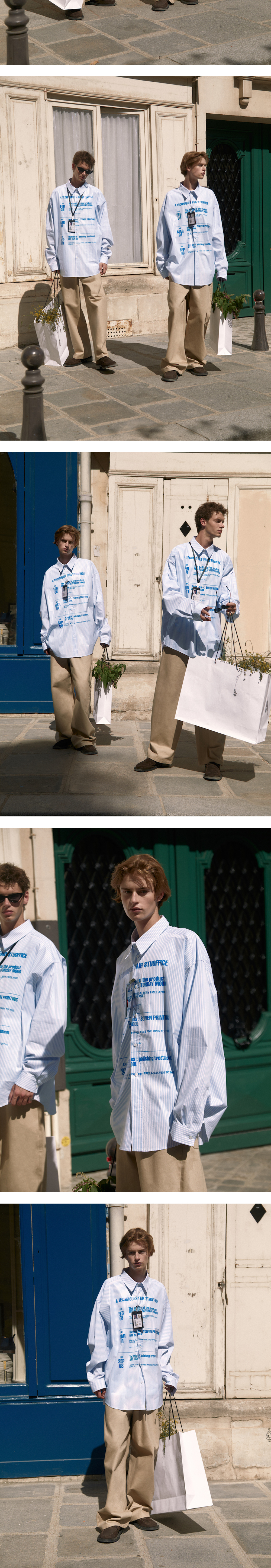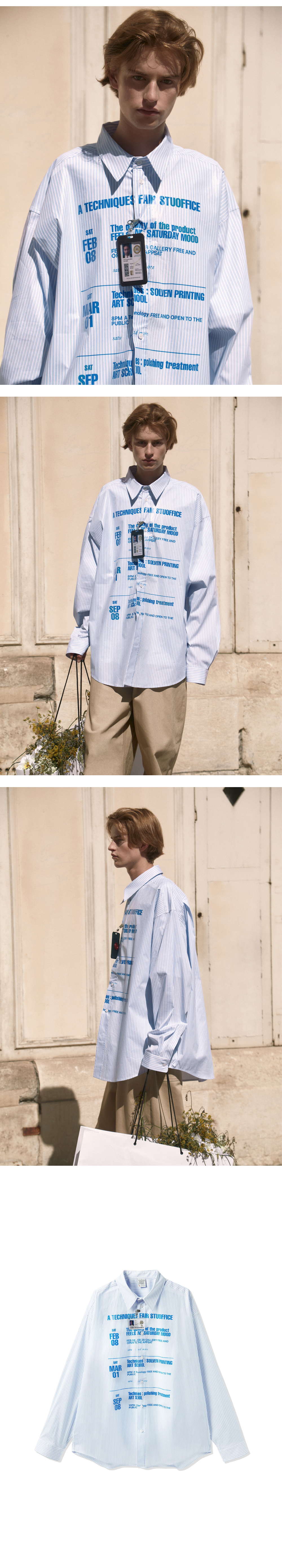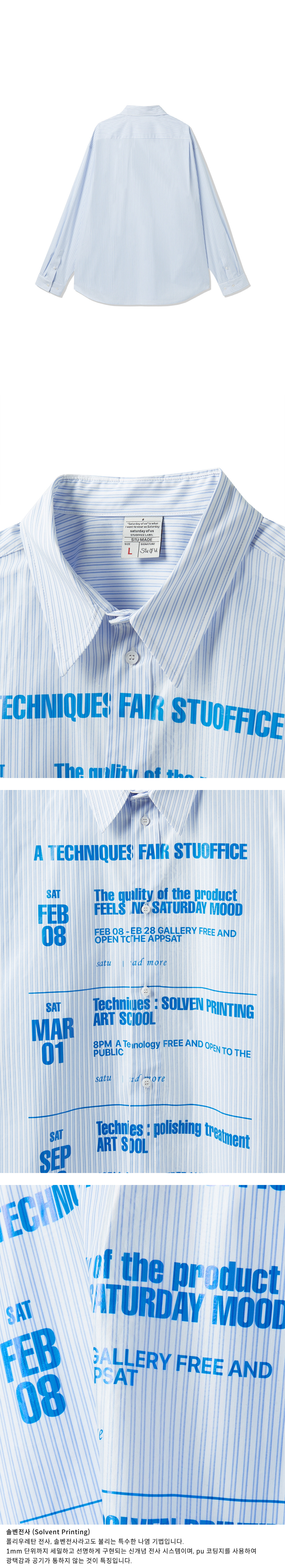 에스티유 코티드 프린팅 스트라이프 셔츠 스카이 블루 + 네임 택
