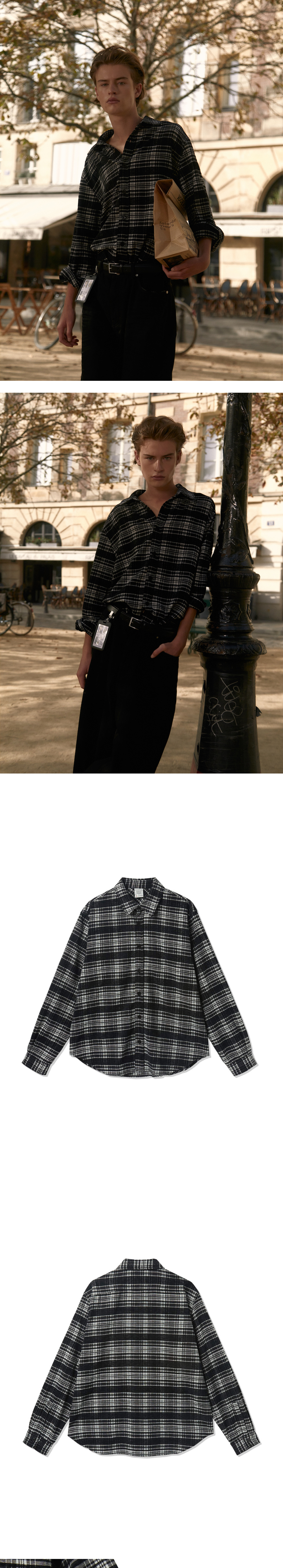 에스티유 체크 셔츠 블랙