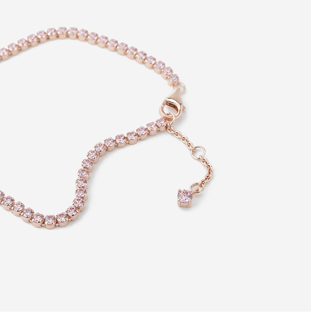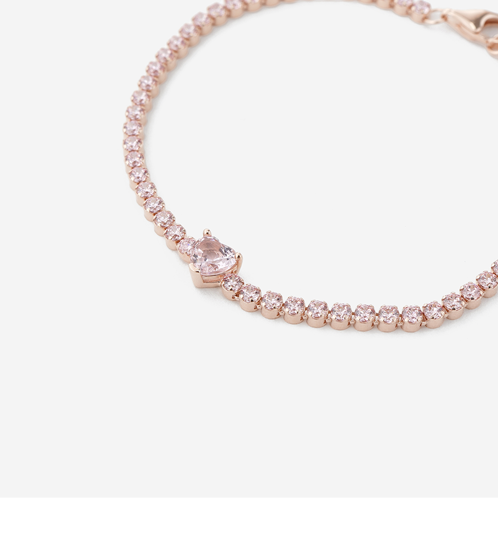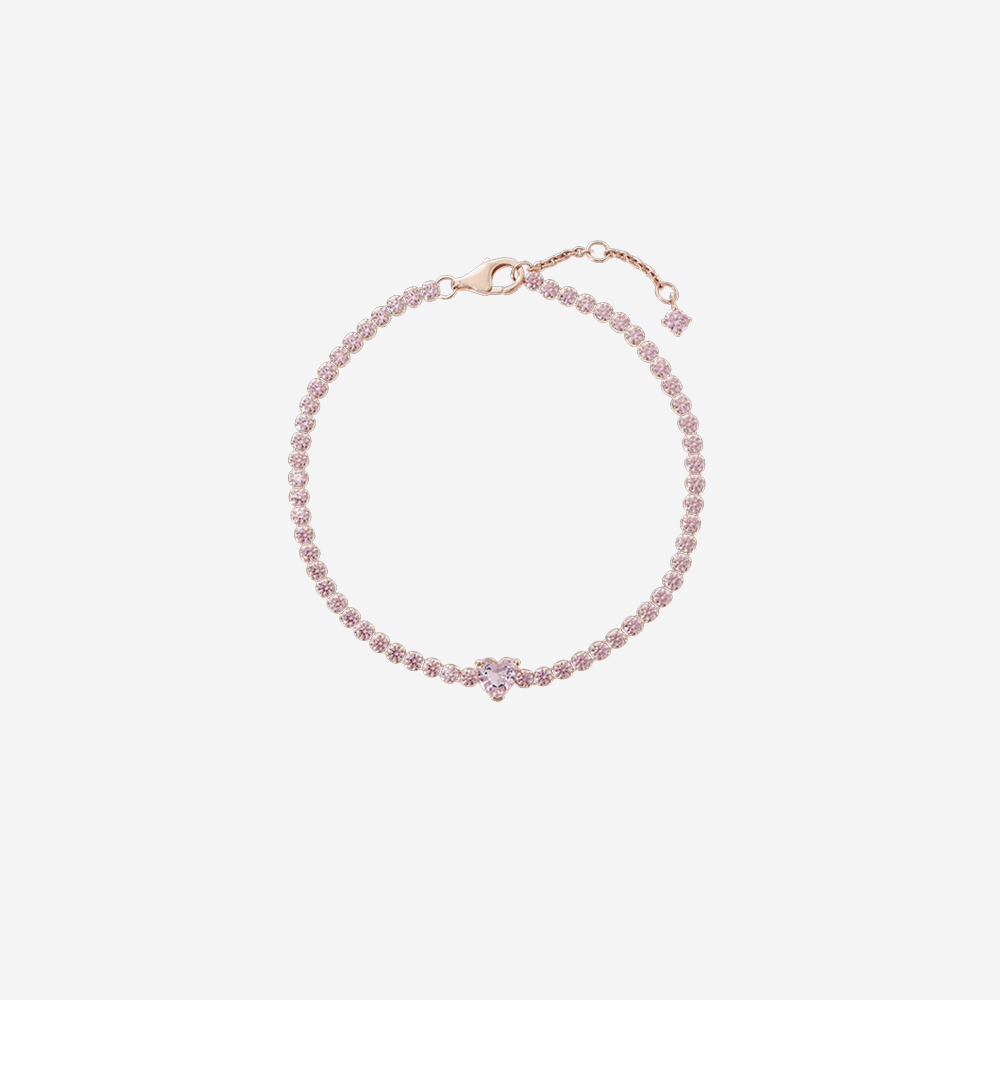 (W) 판도라 스파클링 하트 테니스 브레이슬릿 로즈 골즈 플래팅