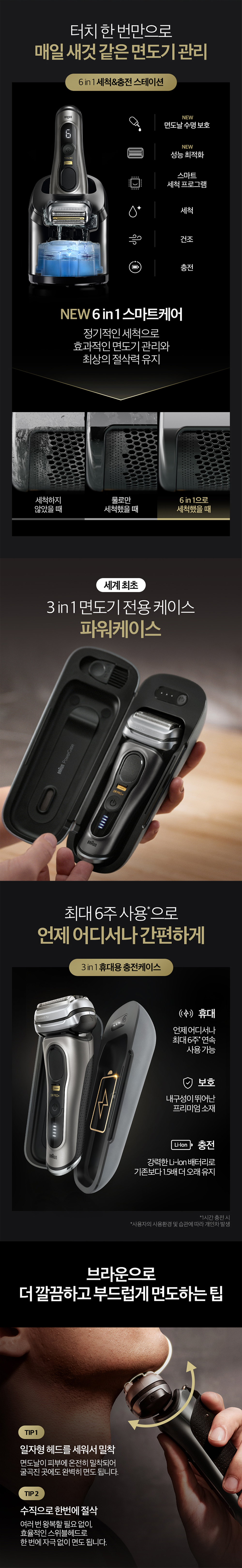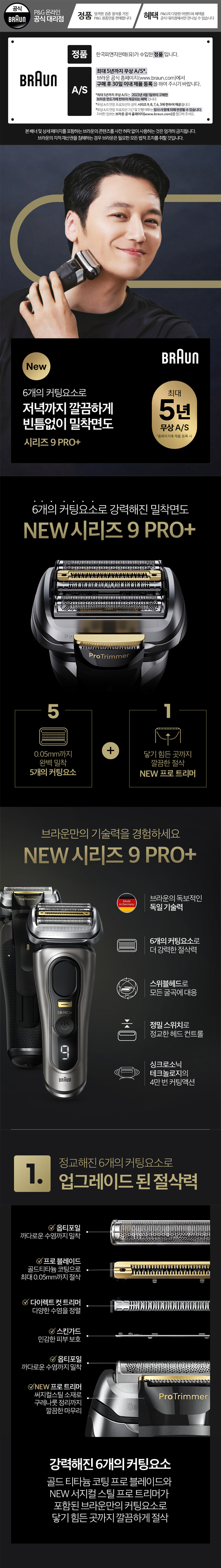 6가지 커팅요소로 밀착면도의 기능성과 브라운의 시그니처 블랙&골드 컬러로 한층 업그레이드 된 디자인을 선보이는 브라운의 신제품입니다. ★★★★★★★★★★ 브라운 전기면도기 시리즈 9 PRO Plus 구매 시, 브라운 쇼핑백 & 신세계 상품권 만원 증정!